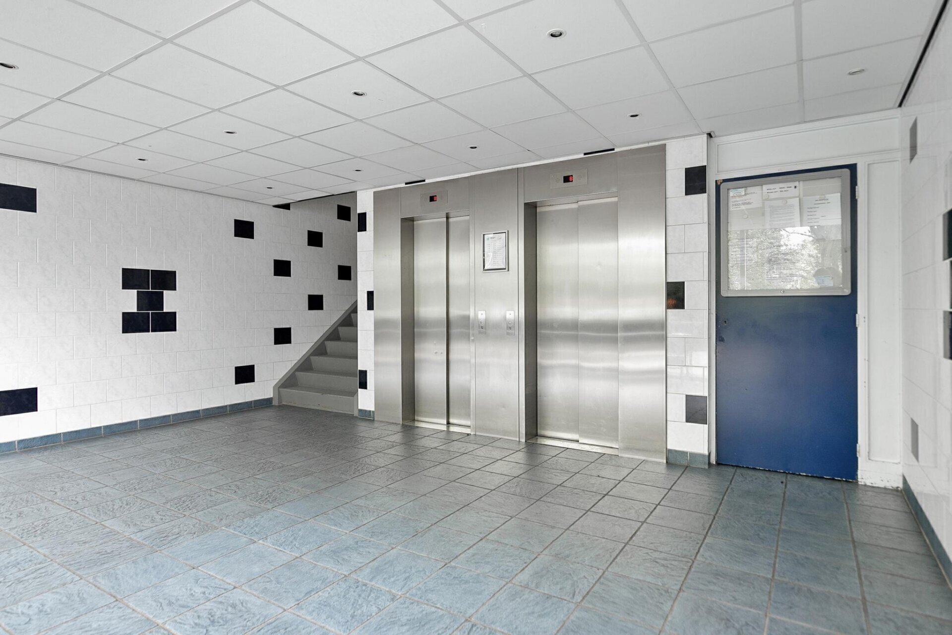 Verzorgde, afgesloten entree met liften, een trappenhuis en toegang tot de bergingen in de onderbouw.