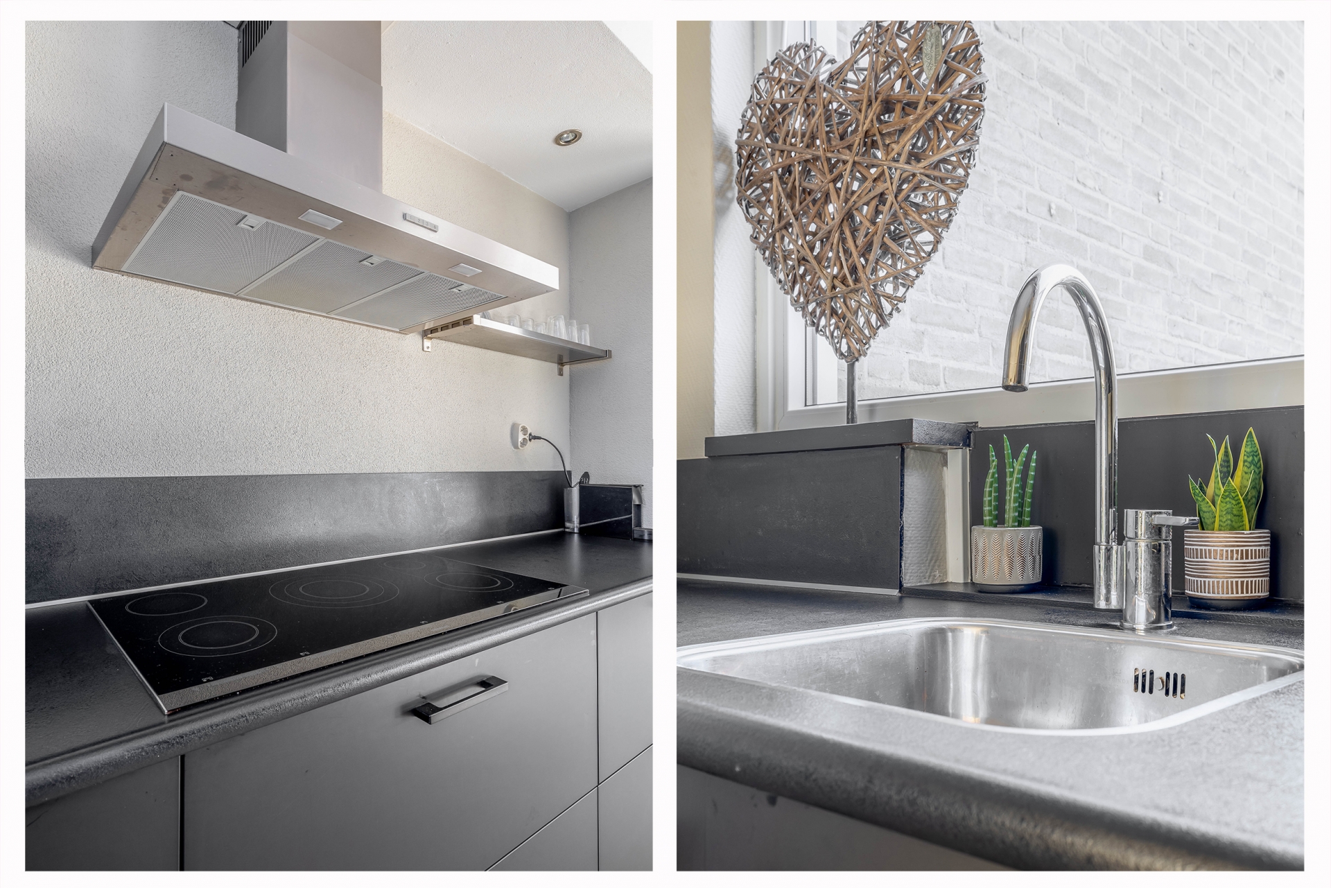 De zonovergoten woonkamer is ruim opgezet en gaat naadloos over in de keuken. De strak afgewerkte keuken is voorzien van diverse inbouwapparatuur (alles van siemens), waaronder een vaatwasser, keramischekookplaat met afzuigkap, inbouwkoelkast, oven en magnetron.