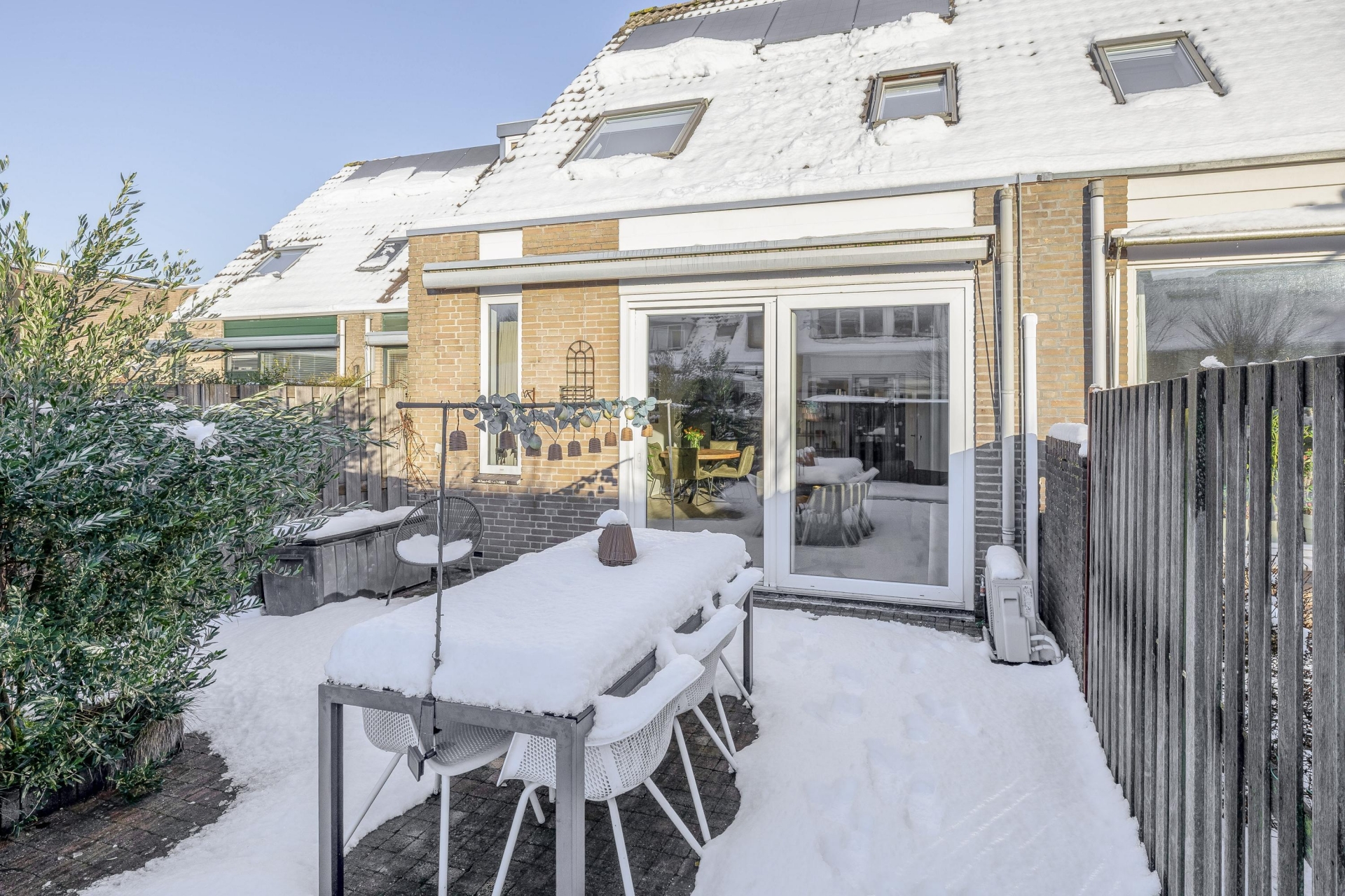 Via de schuifpui bereikt u de zonnige achtertuin. In de tuin bevindt zich de airconditioningunit ten behoeve van de woonkamer. De ruime achtertuin van ca. 53 m² is gelegen op het zuidwesten en beschikt over een achterom.
