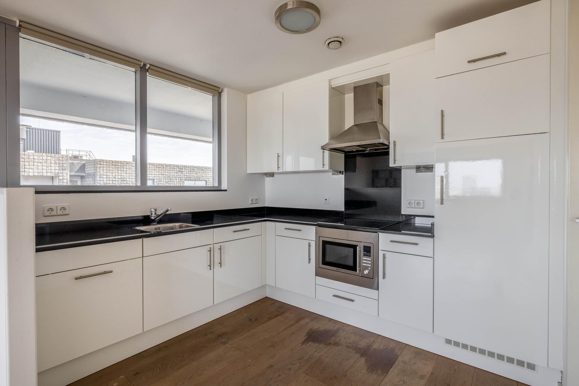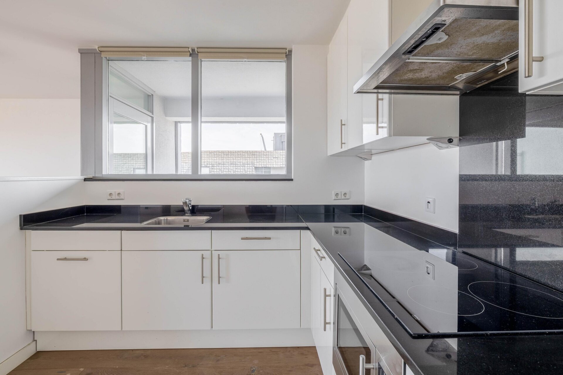 De woning is volledig voorzien van een houten vloer en beschikt over een moderne keuken met inbouwapparatuur. De ruime woonkamer en slaapkamers zijn licht en praktisch ingedeeld, terwijl de badkamer is uitgerust met ligbad, douche en dubbele wastafel. Dit maakt het appartement direct instapklaar en uiterst comfortabel.
