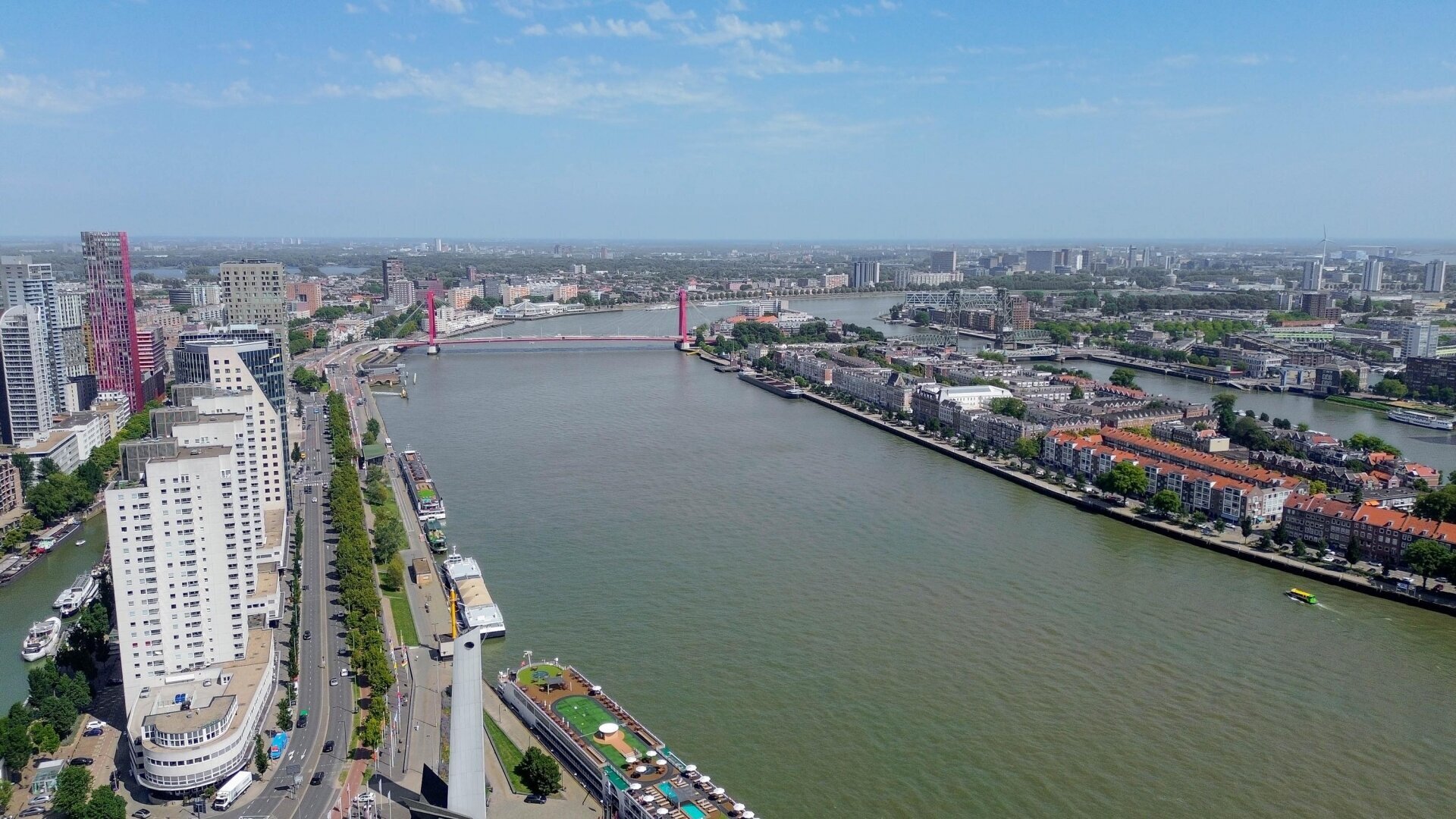 Stap de deur uit en u bevindt zich in het hart van de stad. Binnen enkele minuten wandelt u naar de pittoreske Veerhaven, het park bij de Euromast of de dynamische Witte de Withstraat. Ook de Erasmusbrug en hotspots als Hotel New York en Katendrecht liggen op loopafstand. Bovendien liggen de opstapplaatsen van watertaxi, waterbus en Spido praktisch voor de deur - ideaal voor wie de stad graag vanaf het water ervaart.