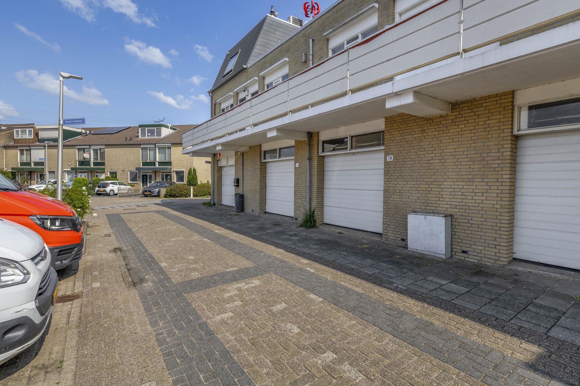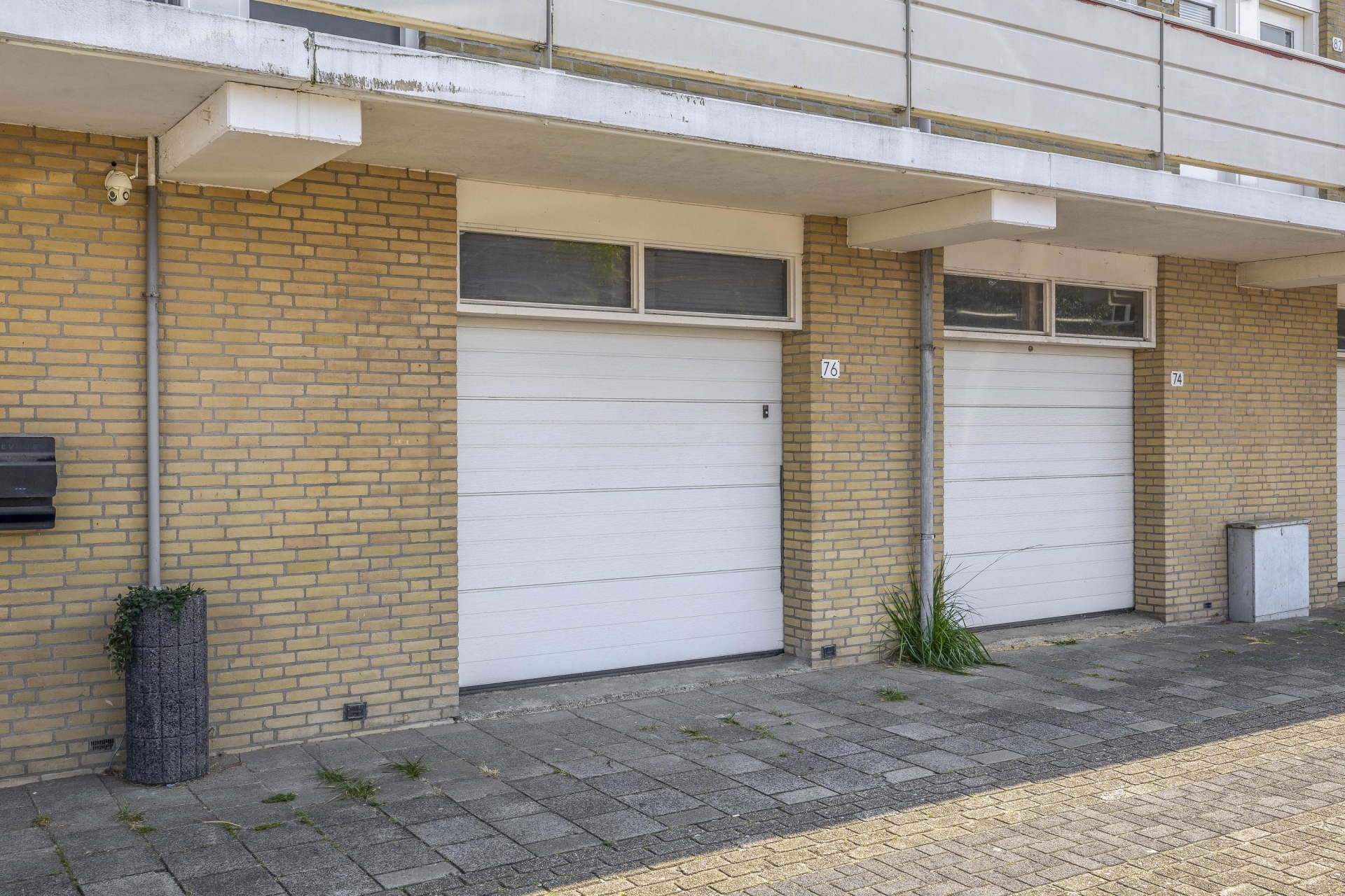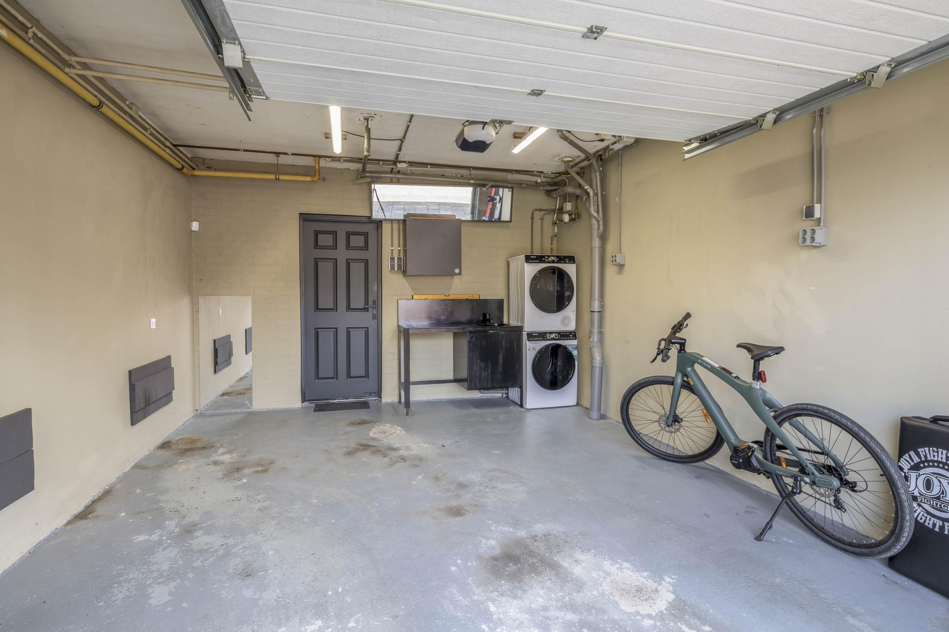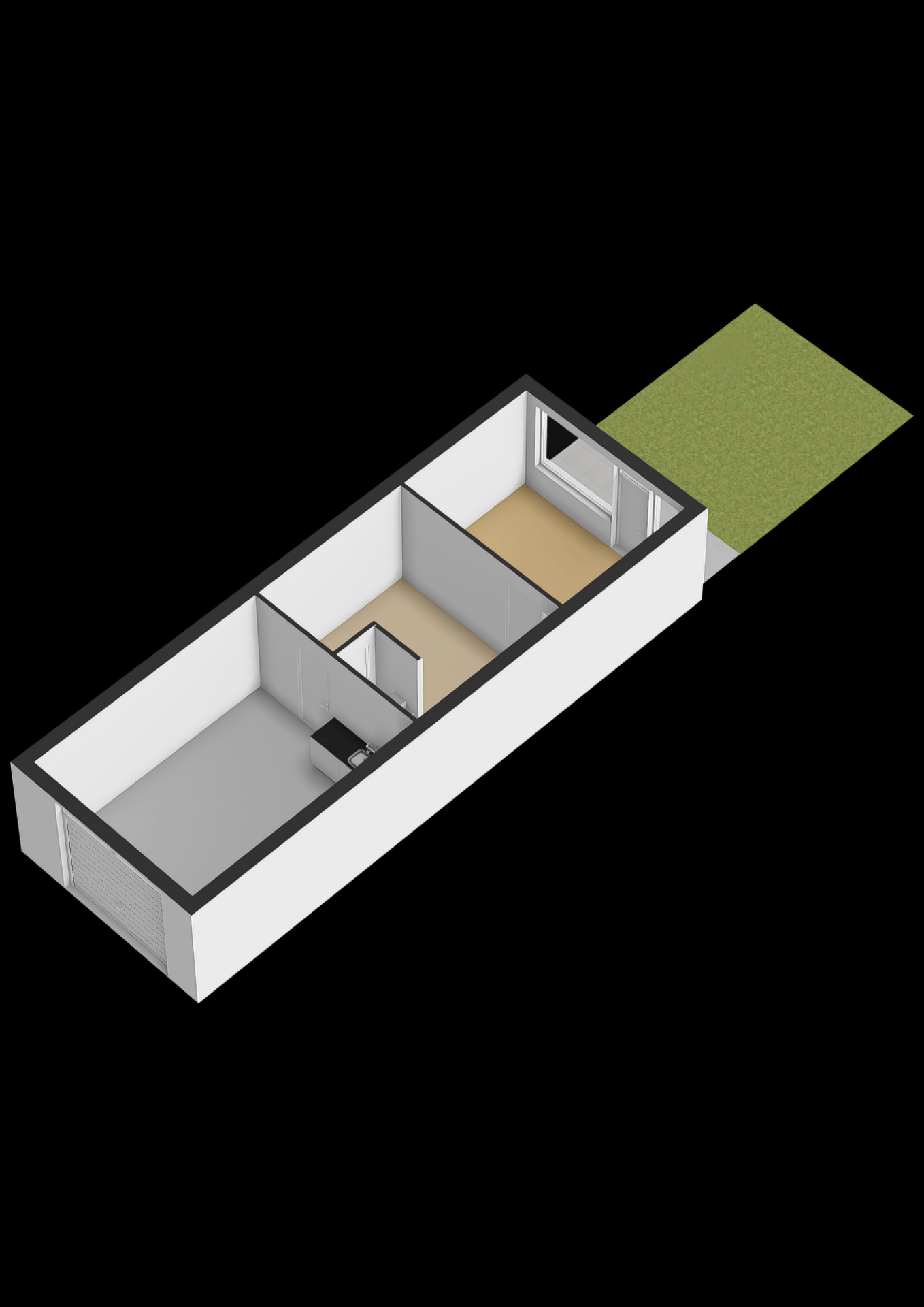 Aan de voorzijde treft u de garage, voorzien van een laadpunt, verwarming, warm water en een aansluiting voor de wasmachine.