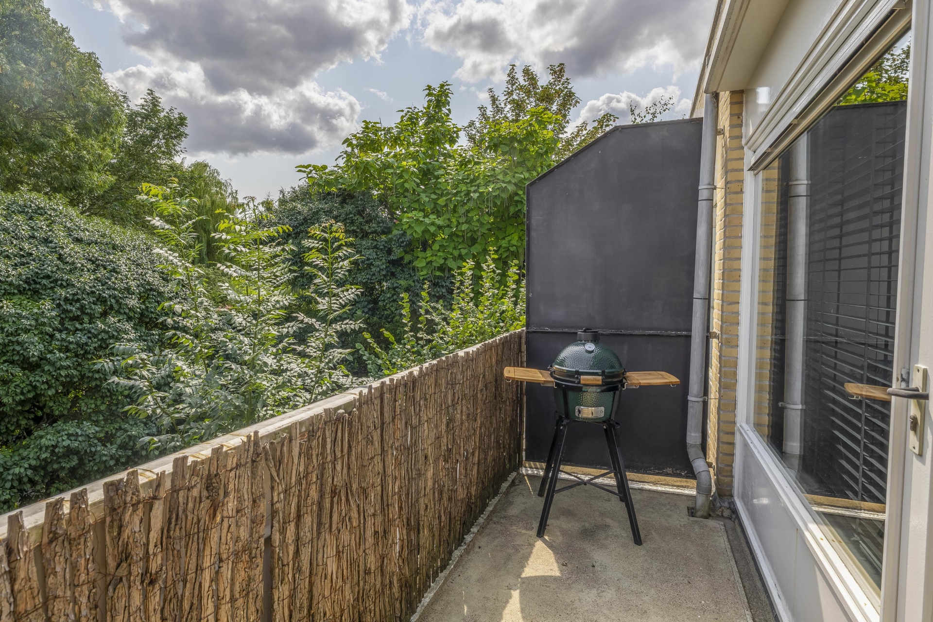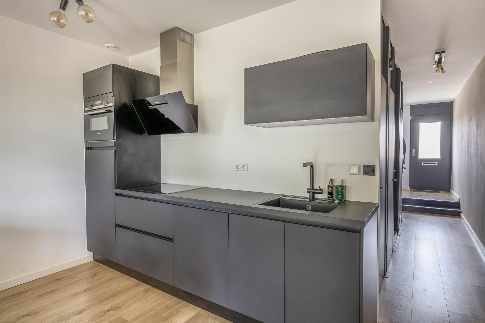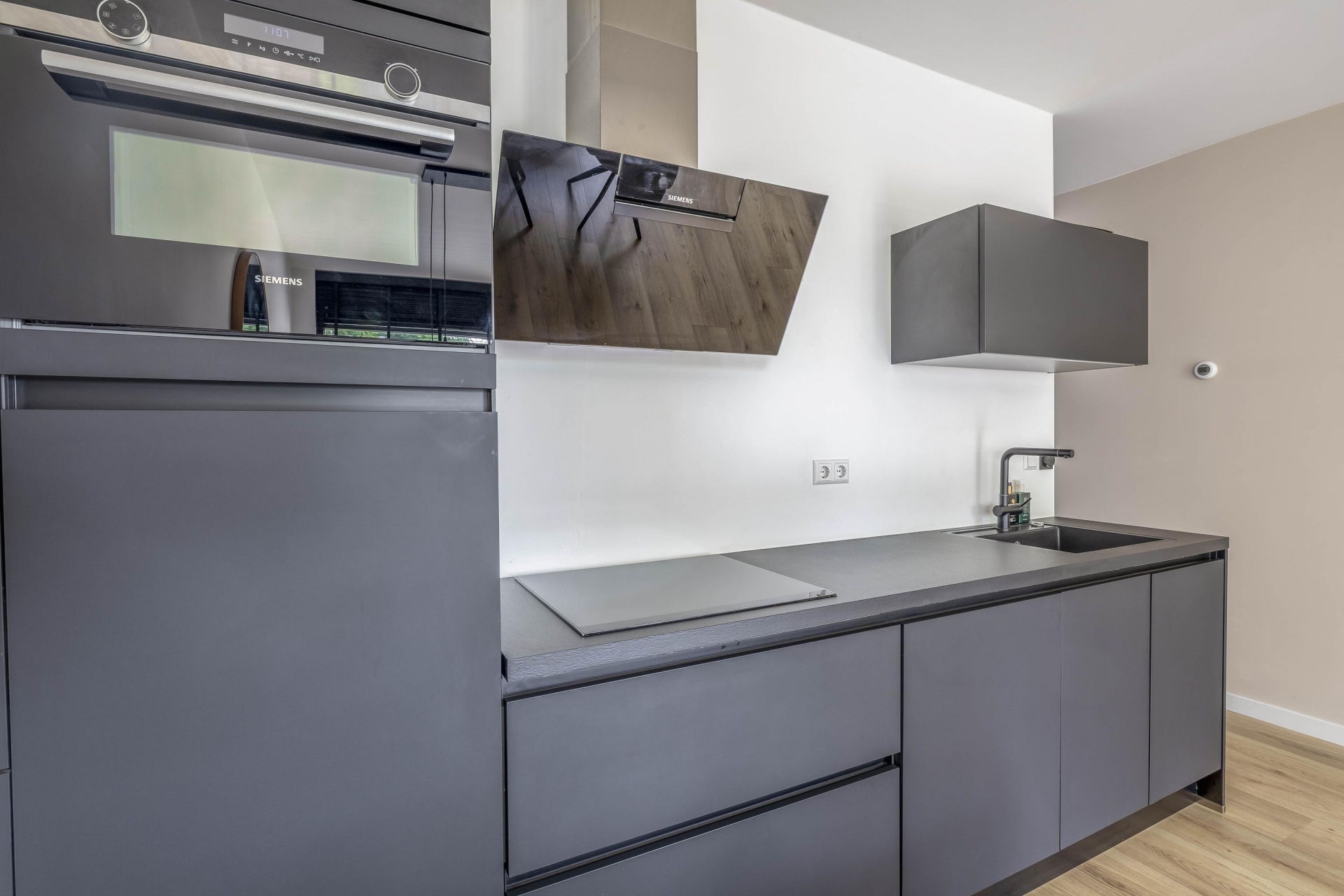 Via de hal bereikt u de lichte woonkamer met open keuken. Vanuit de woonkamer is er toegang tot een zonnig balkon op het zuidoosten. De keuken is in 2021 vernieuwd en voorzien van diverse inbouwapparatuur, waaronder een koelkast met vriesvak, vaatwasser, inductiekookplaat uit 2025 en een designafzuigkap.