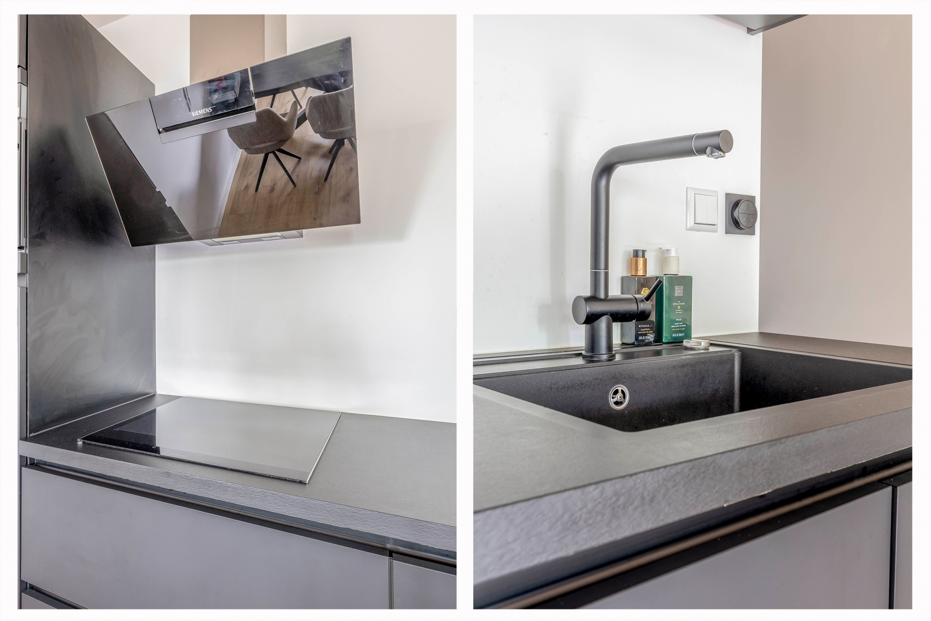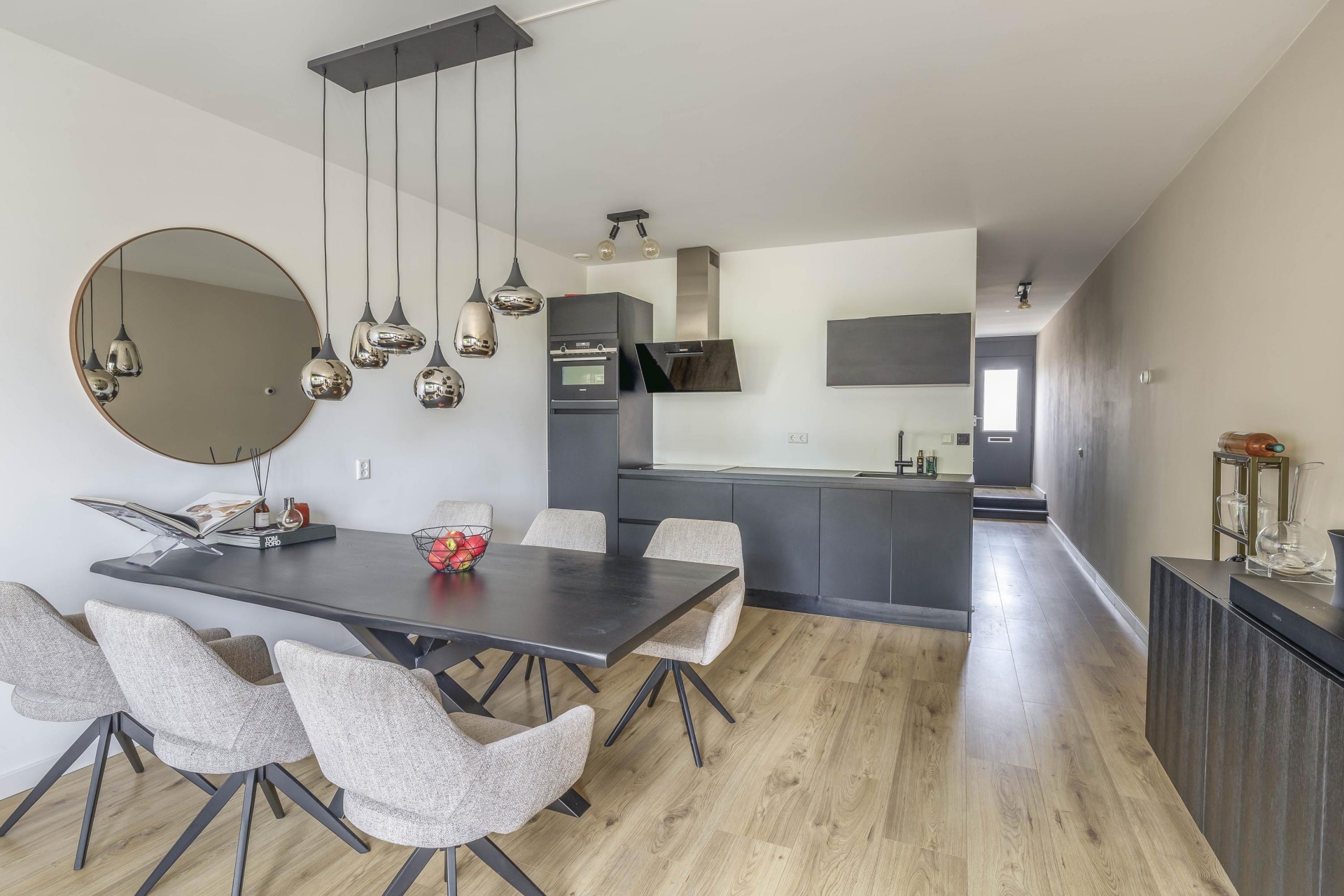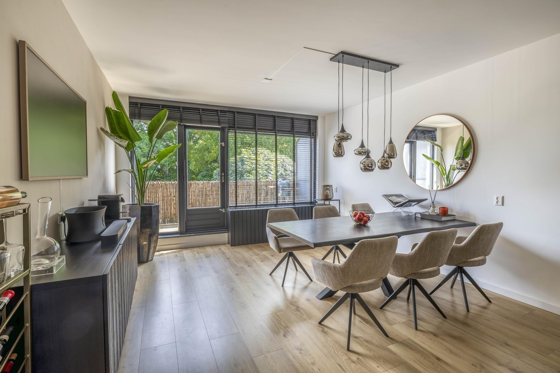 Via de hal bereikt u de lichte woonkamer met open keuken. Vanuit de woonkamer is er toegang tot een zonnig balkon op het zuidoosten. De keuken is in 2021 vernieuwd en voorzien van diverse inbouwapparatuur, waaronder een koelkast met vriesvak, vaatwasser, inductiekookplaat uit 2025 en een designafzuigkap.
