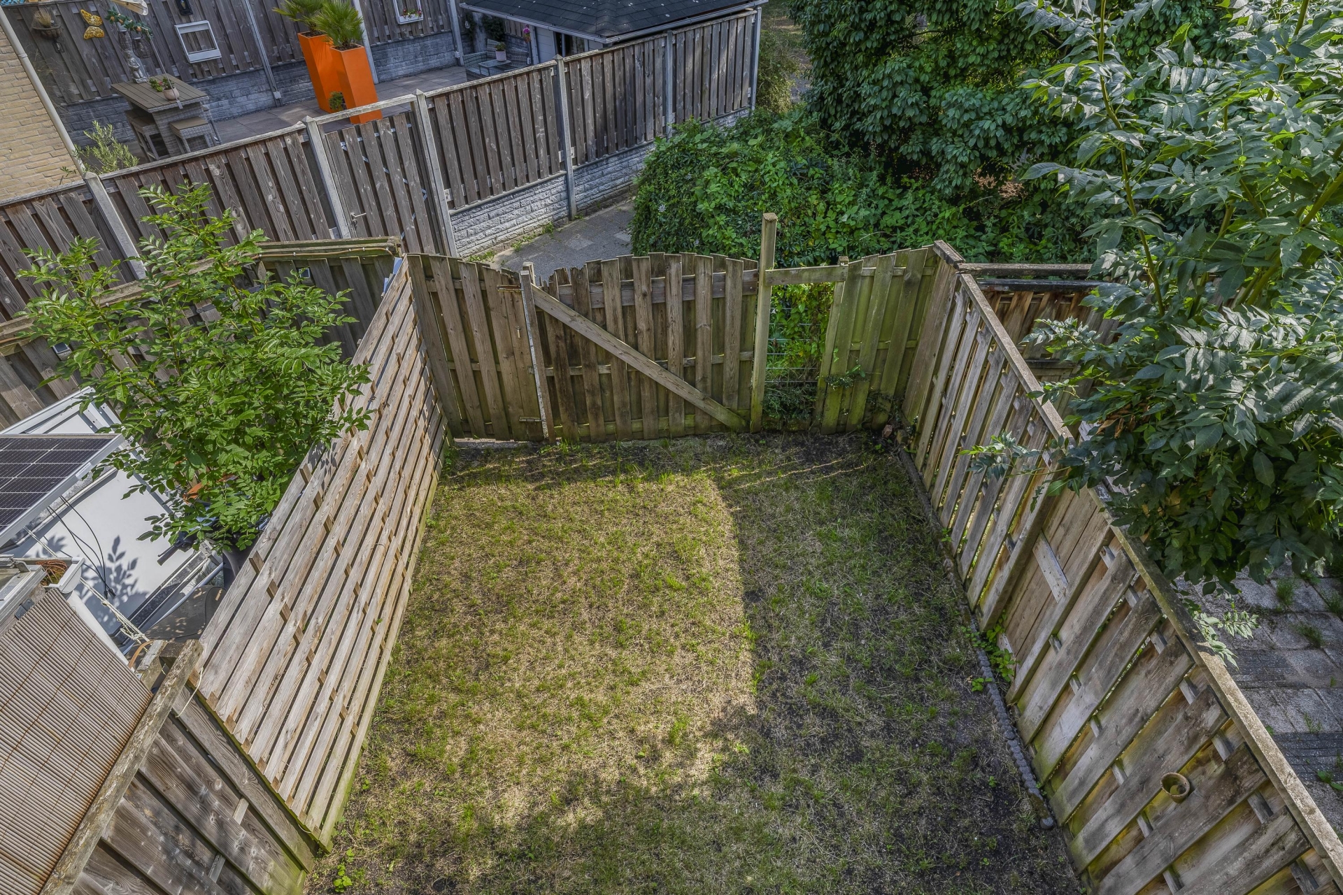 De zonnige achtertuin, gelegen op het zuidoosten, biedt volop mogelijkheden om geheel naar eigen wens in te richten.