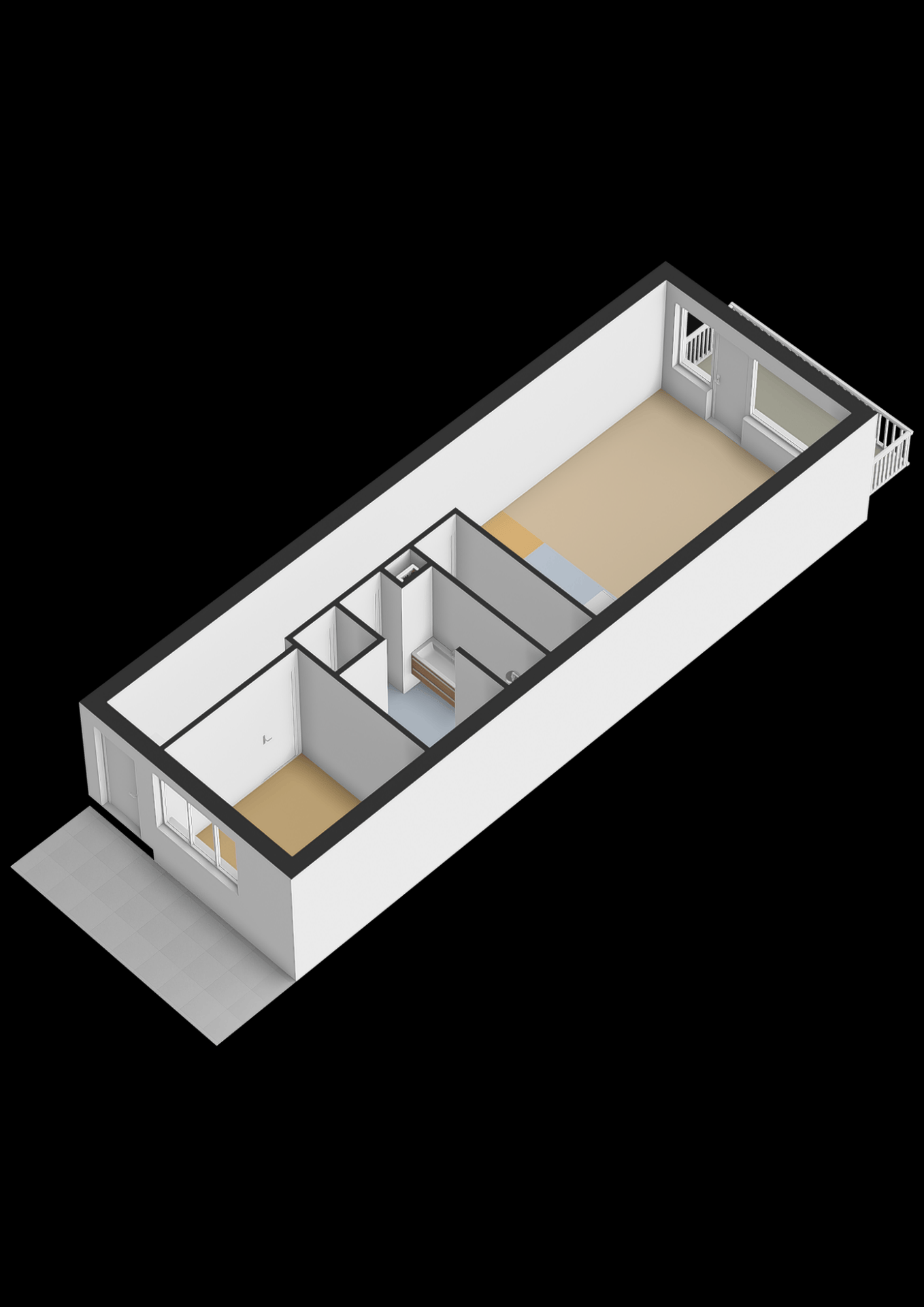 Aan de voorzijde bevindt zich de slaapkamer, met een afmeting van circa 2,76 bij 2,73 meter. In de hal treft u tevens een stookruimte met cv-ketel (Remeha Avanta, 2021) en de vernieuwde meterkast.