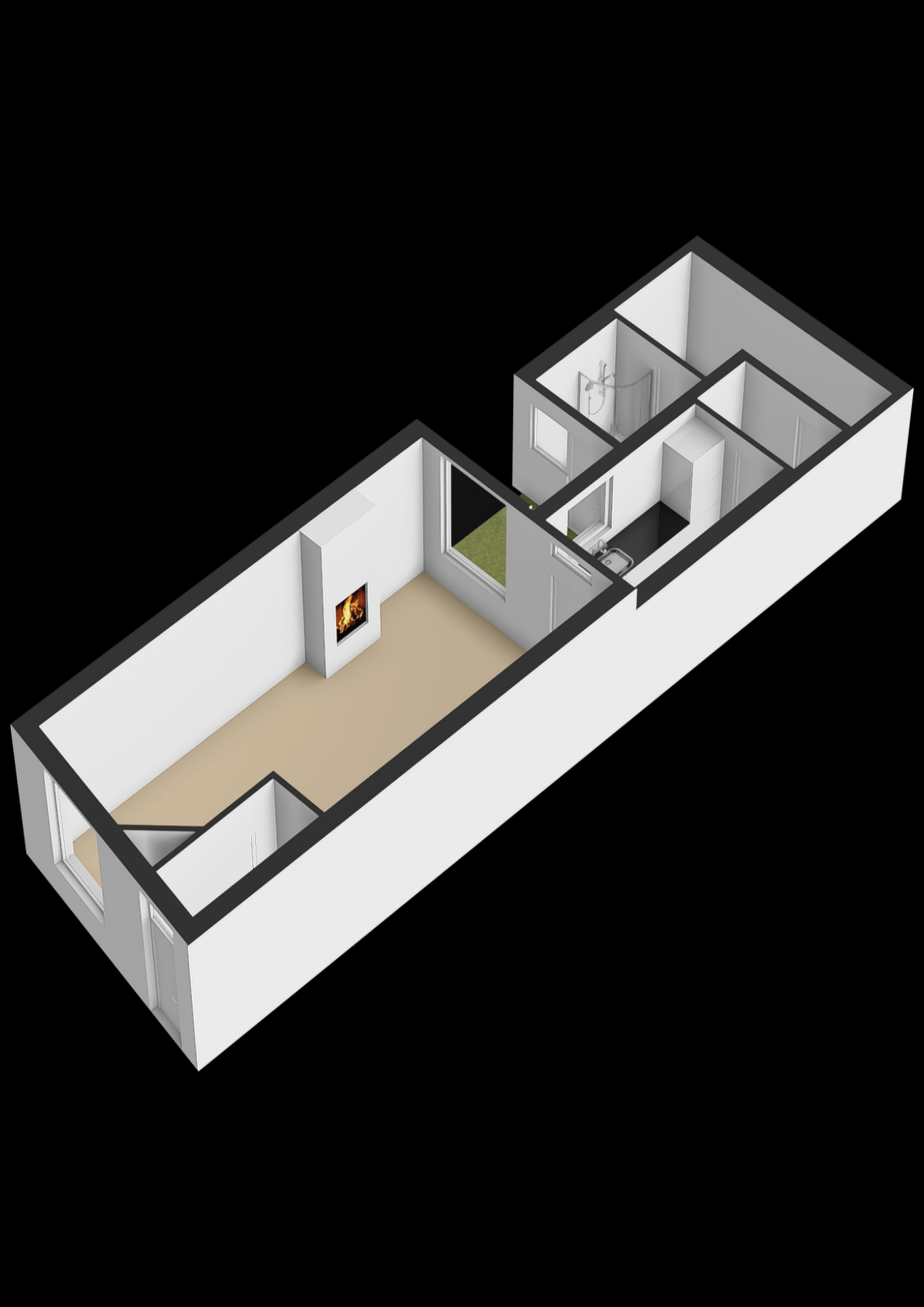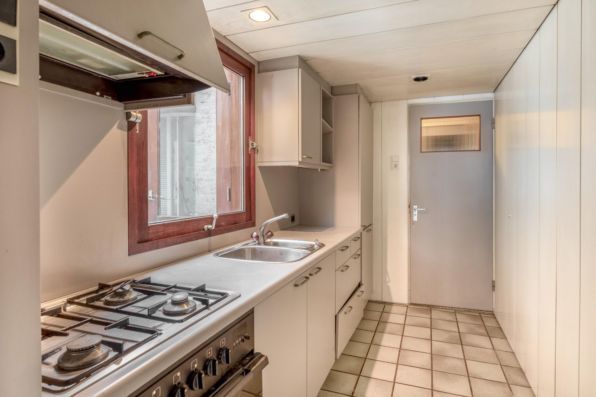 De woonkamer ligt aan de voorzijde en heeft een prettige lichtinval. De ruimte loopt door naar de keuken en vervolgens naar de bijkeuken, waar verrassend veel mogelijkheden zitten voor herindeling. Denk aan een open leefkeuken, een extra slaapkamer óf het creëren van een grotere tuin, hier kun je echt alle kanten op.