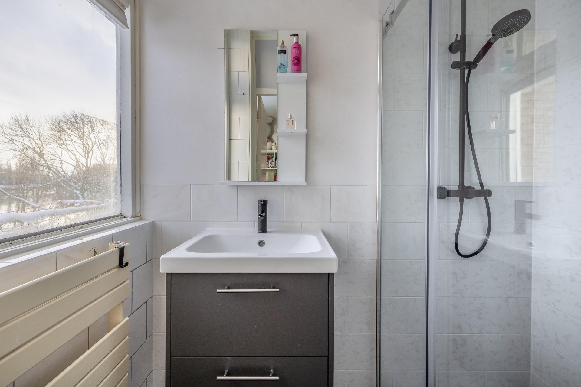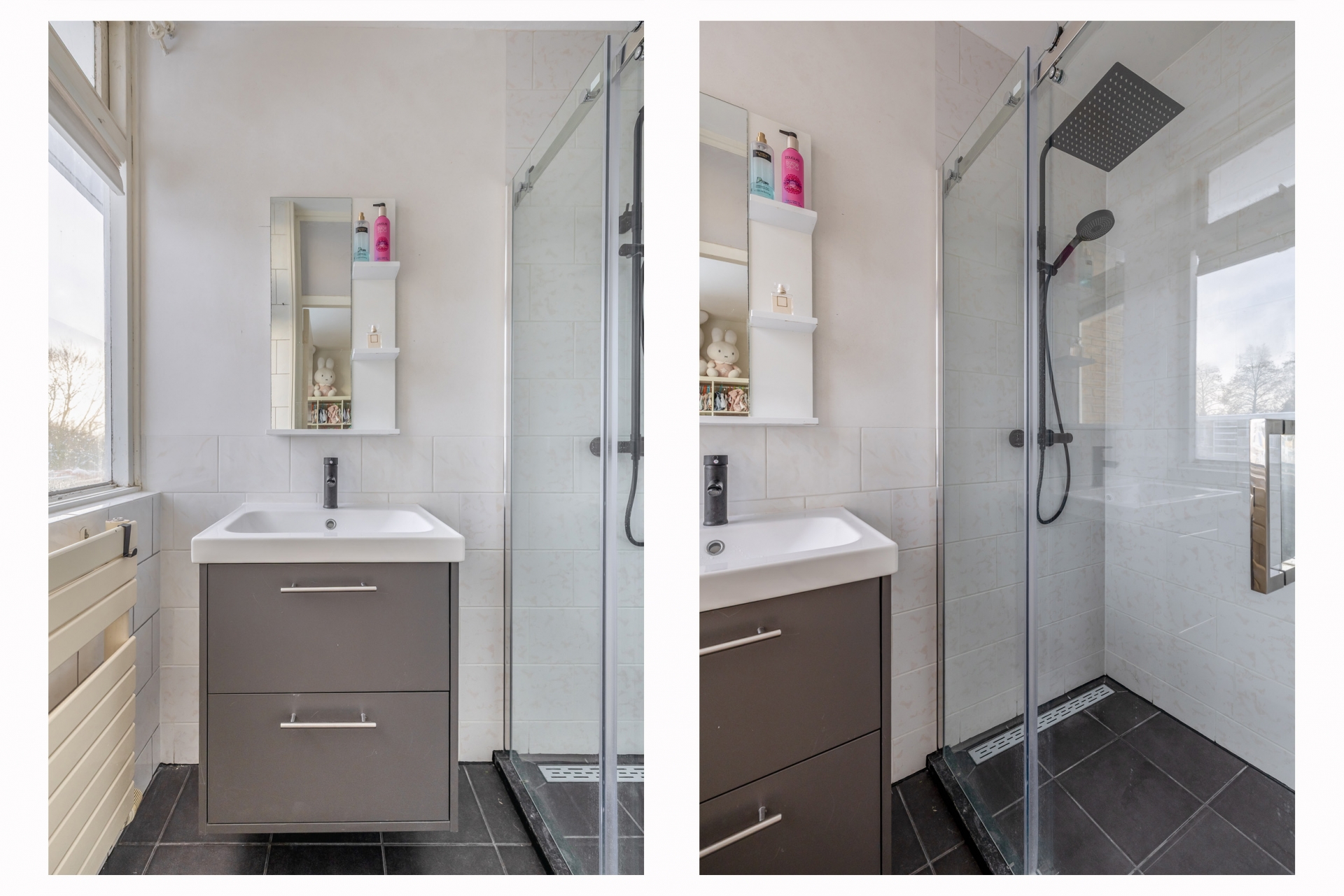 De badkamer is in november 2025 volledig vernieuwd en uitgevoerd met nieuwe leidingen en hoogwaardige materialen. Voorzien van een douche, wastafel en handdoekenradiator.