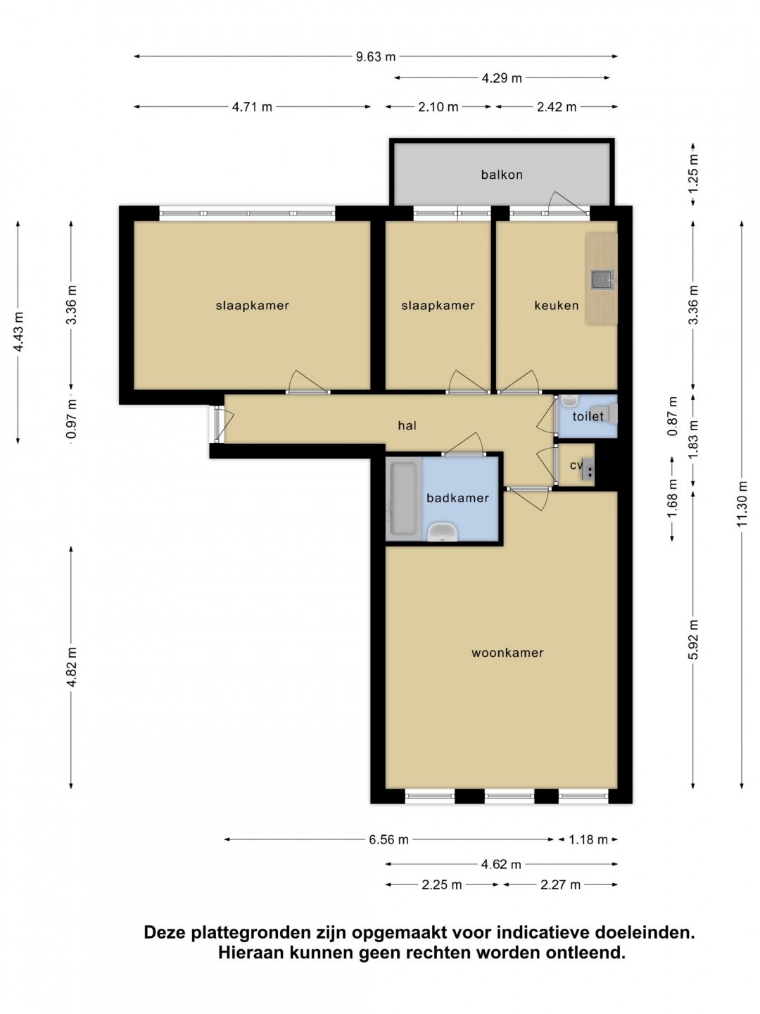 “Deze informatie is door ons met de nodige zorgvuldigheid samengesteld. Onzerzijds wordt echter geen enkele aansprakelijkheid aanvaard voor enige onvolledigheid, onjuistheid of anderszins, dan wel de gevolgen daarvan. Alle opgegeven maten en oppervlakten zijn indicatief.”