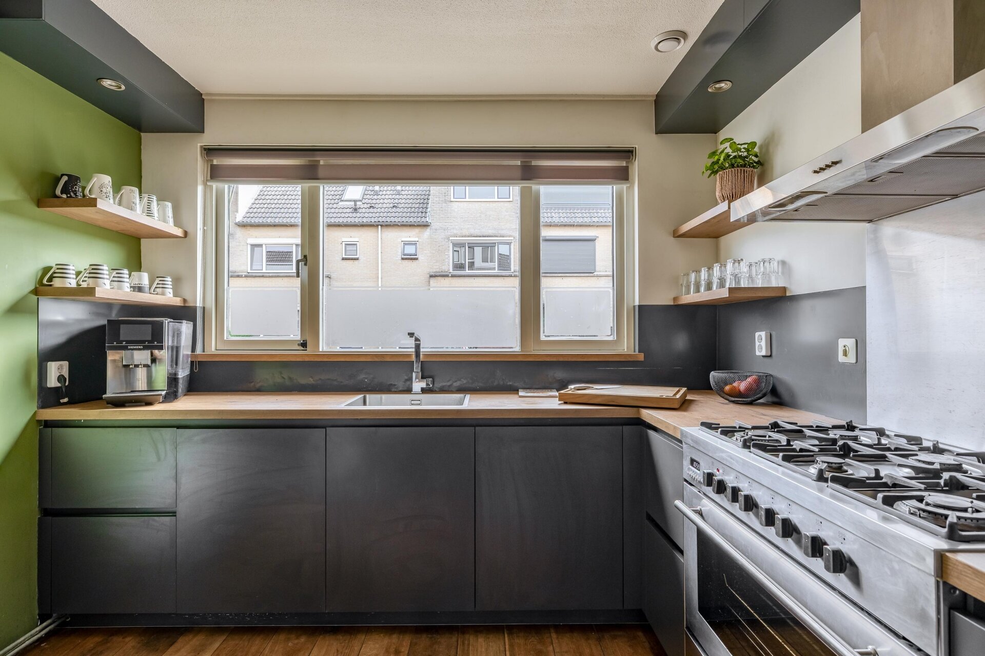- Massieve eikenhouten vloerafwerking op de begane grond;