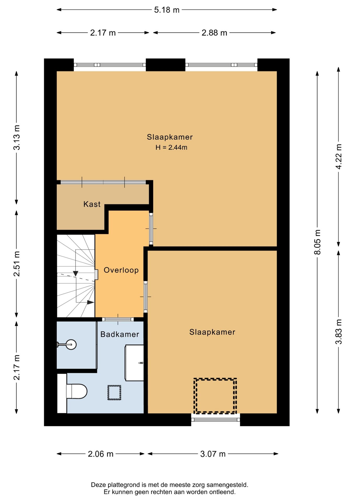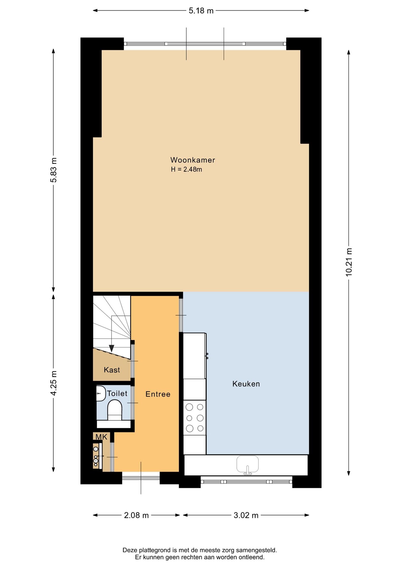 “Deze informatie is door ons met de nodige zorgvuldigheid samengesteld. Onzerzijds wordt echter geen enkele aansprakelijkheid aanvaard voor enige onvolledigheid, onjuistheid of anderszins, dan wel de gevolgen daarvan. Alle opgegeven maten en oppervlakten zijn indicatief.”