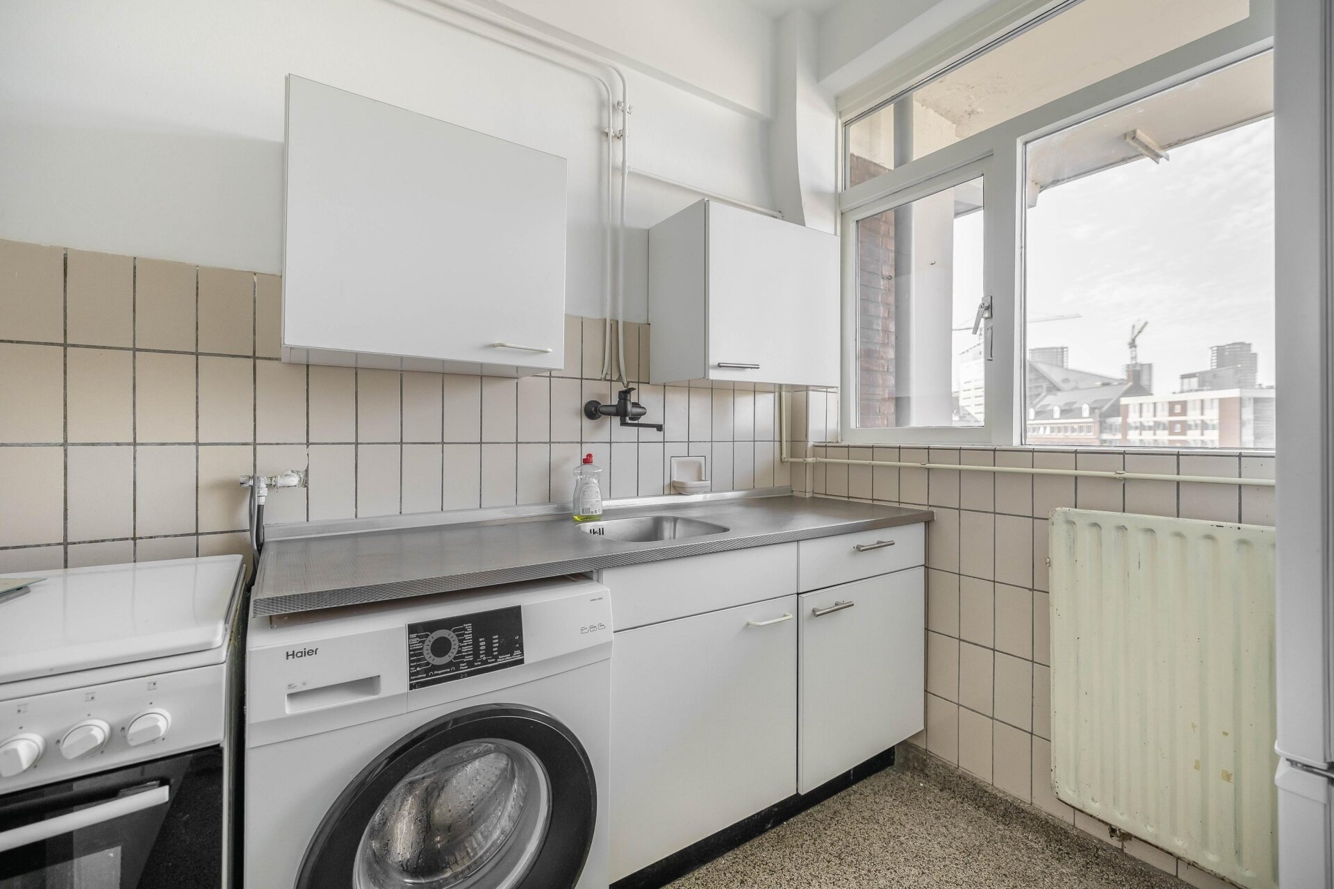 De praktische indeling zorgt voor een verrassend ruimtelijk gevoel. De woonkamer is licht en uitnodigend, dankzij grote raampartijen en het vrije uitzicht over de stad. De twee slaapkamers bieden voldoende ruimte voor een comfortabel bed, kast en werkplek.