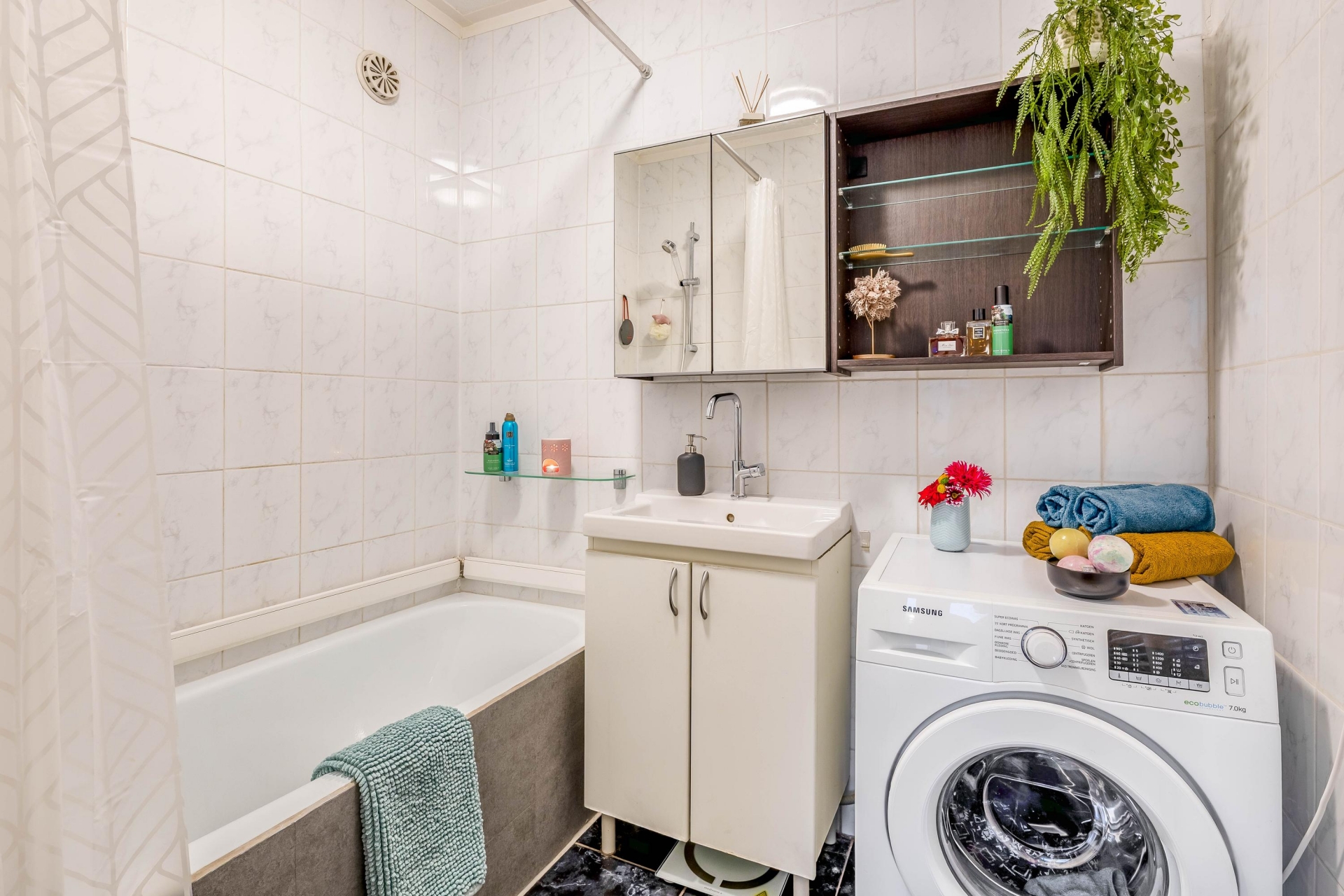 Het appartement is voorzien van stadsverwarming, volledig dubbel glas en een eigen berging op dezelfde verdieping.