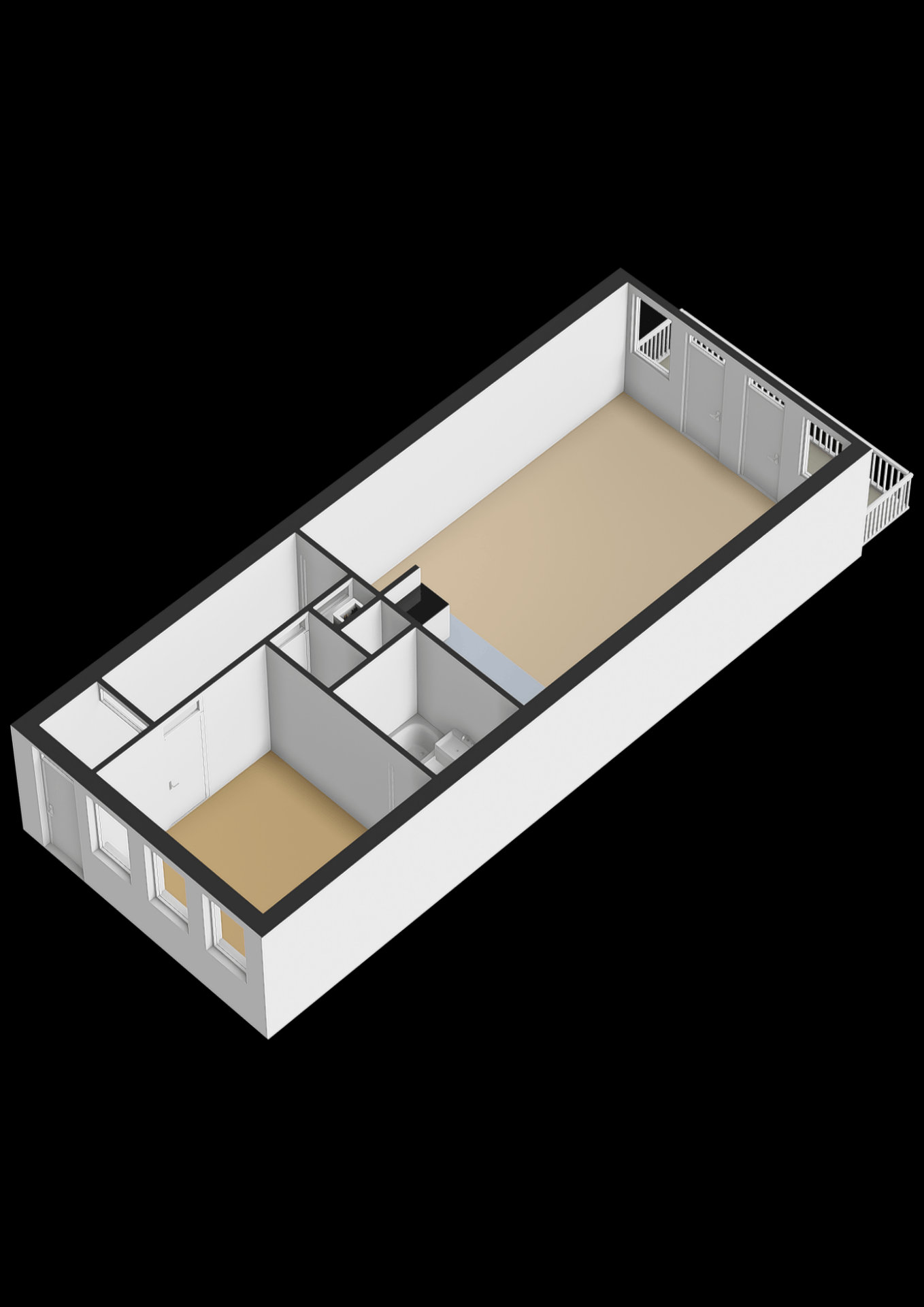 Via de ruime hal bereik je alle vertrekken. De woonkamer is royaal en profiteert van grote ramen aan de voorzijde. Openslaande deuren geven toegang tot het brede balkon op het zuiden: perfect voor een ochtendkoffie of een borrel na het werk.
