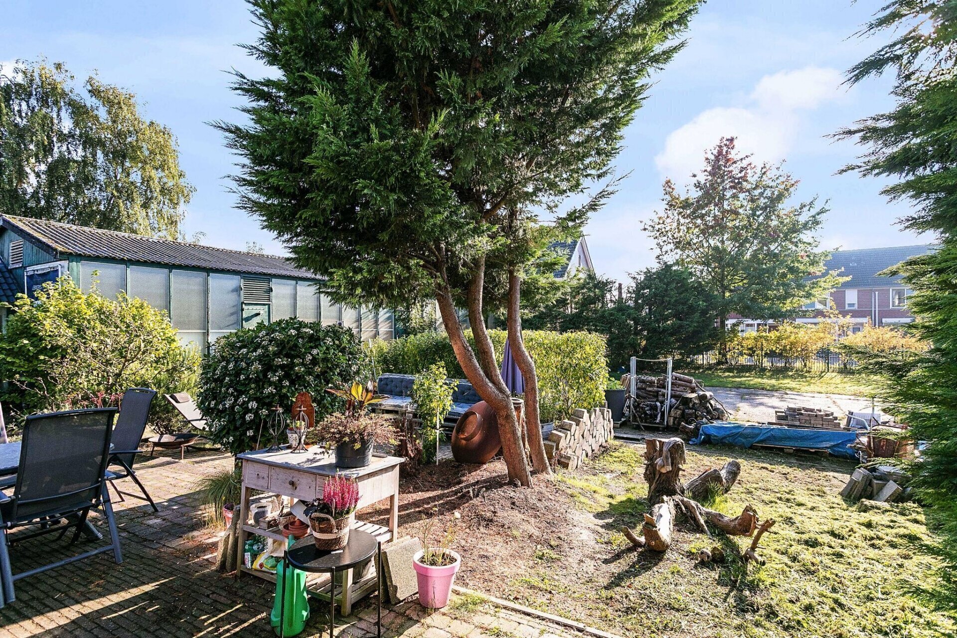 Het achterste gedeelte van het erf is ingelegd met beton tegels en heeft nu enkel een opslag/parkeer functie.