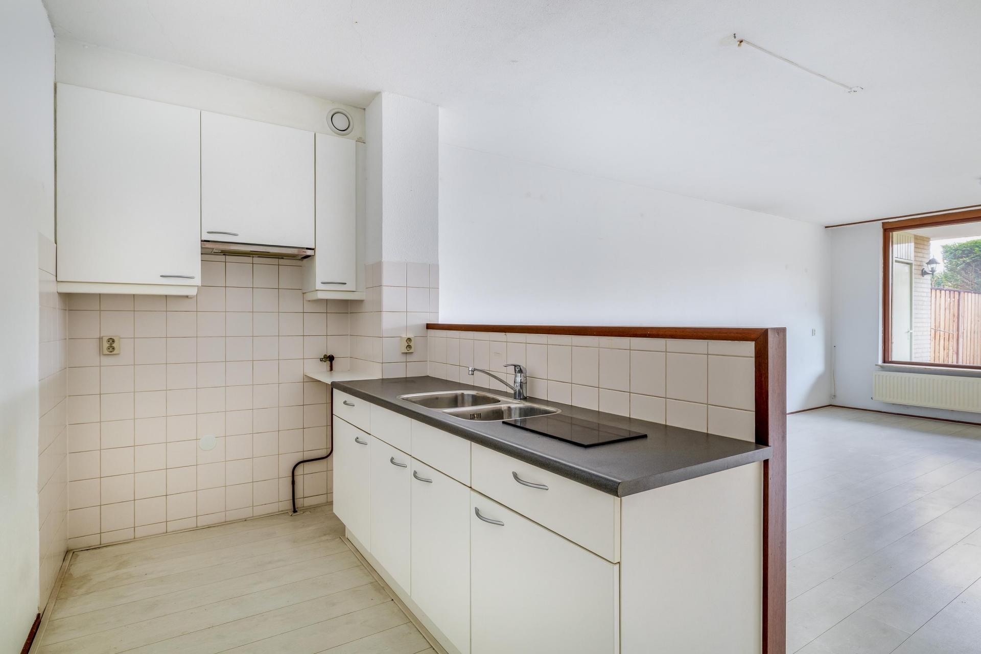 Je komt maar zelden een gelijkvloerse woning tegen met een grote zonnige tuin van ca. 80m². Parkeer je auto voor de deur en loop via de voortuin zo je woning binnen. Het appartement is heerlijk licht en ruim en heeft veel mogelijkheden om het naar eigen smaak af te werken en in te richten. De woonkamer met open keuken is heerlijk ruim en kijkt uit op de zonnige achtertuin op het zuidwesten. De ruime kamer aan de achterzijde heeft een grote berging/kast en kan als slaapkamer, werkkamer of als eetkamer worden ingericht. Ruime slaapkamer aan de voorzijde. De badkamer heeft een ligbad, wastafel en handdoekenradiator. De ruime berging naast de voordeur is ideaal en praktisch voor al je opbergruimte. Nieuwsgierig geworden? Laat je verrassen en rondleiden door dit fijne appartement!