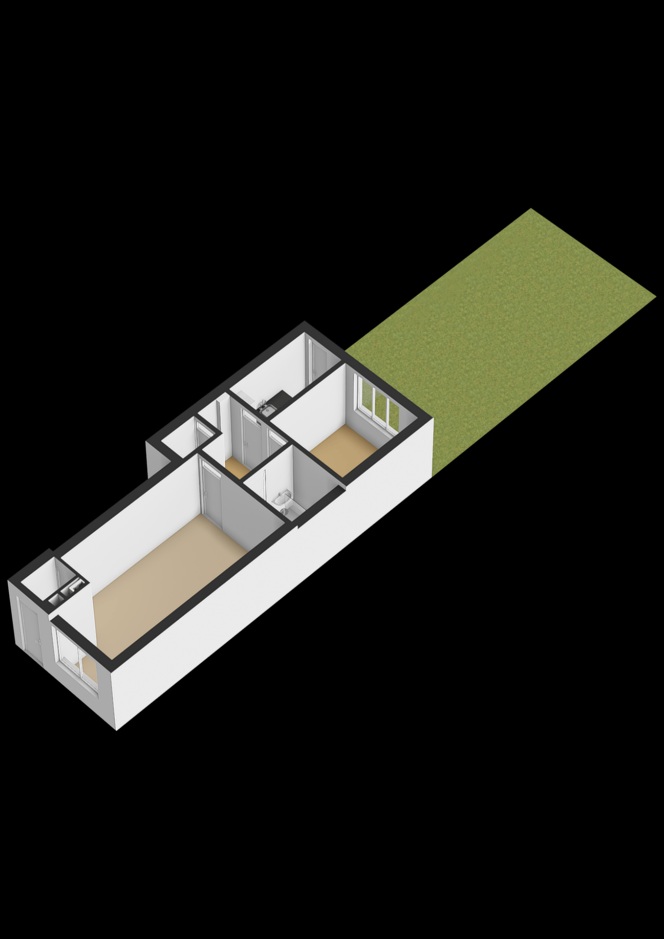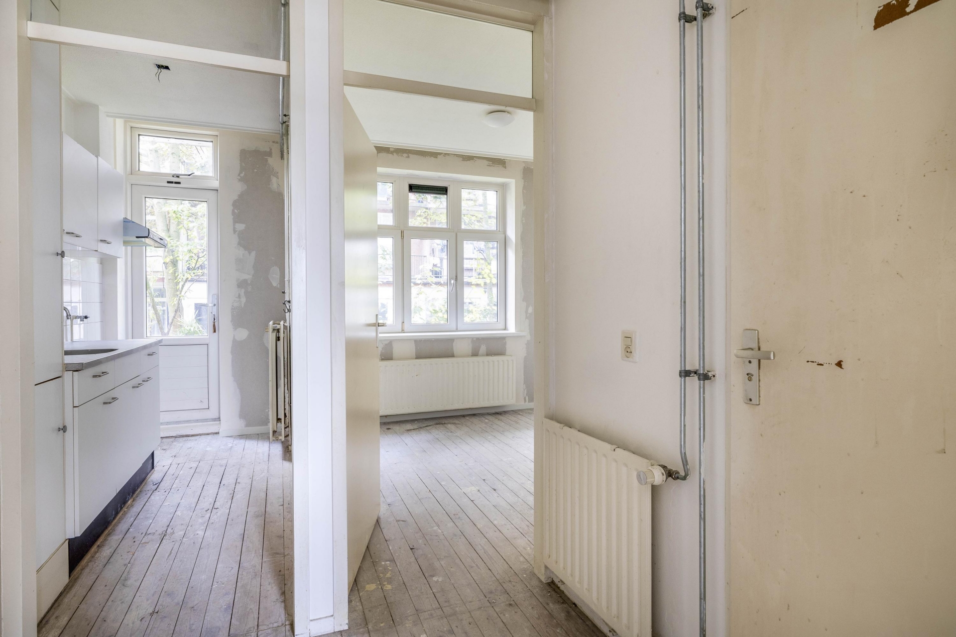 Het huis heeft een praktische indeling: een lichte woonkamer, een keuken die toegang geeft tot de tuin, een rustige slaapkamer aan de achterzijde en een compacte badkamer. Met de juiste aanpassingen kun je hier een comfortabel en stijlvol benedenhuis realiseren.