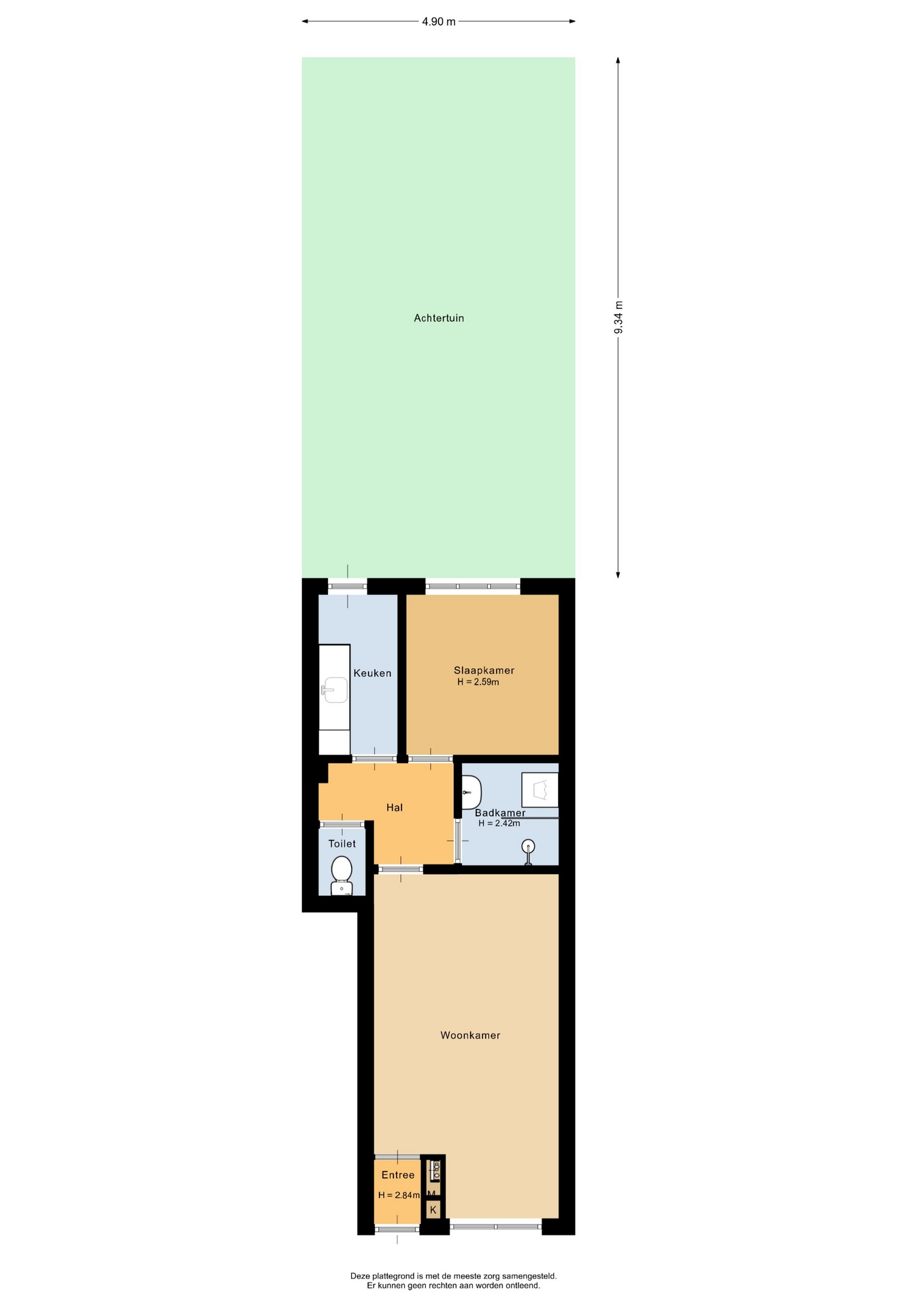 “Deze informatie is door ons met de nodige zorgvuldigheid samengesteld. Onzerzijds wordt echter geen enkele aansprakelijkheid aanvaard voor enige onvolledigheid, onjuistheid of anderszins, dan wel de gevolgen daarvan. Alle opgegeven maten en oppervlakten zijn indicatief.”