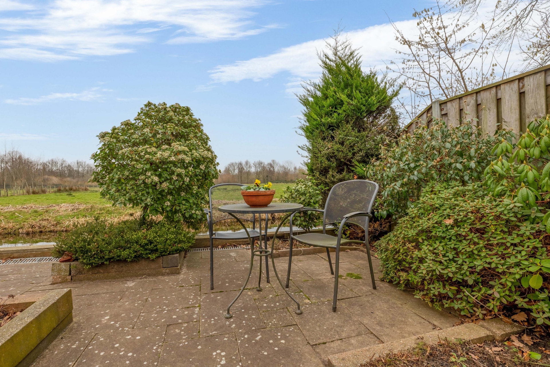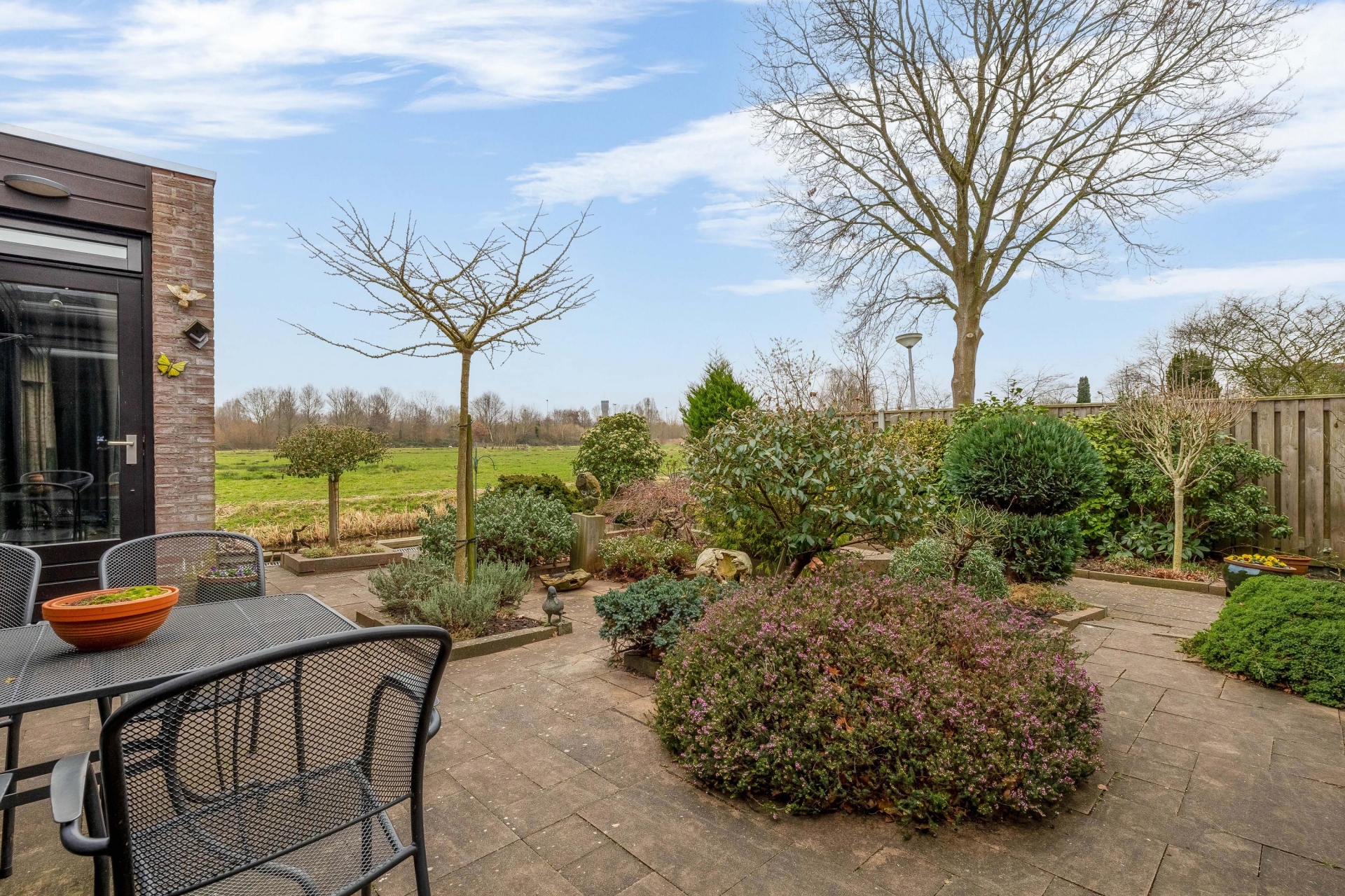 De tuin is een echte verrassing: ruim, groen aangelegd en gelegen op het zuidoosten. Of je nu graag in de ochtendzon je koffie drinkt of in de middag geniet van een goed boek onder de parasol – deze tuin biedt het allemaal. Dankzij de slimme indeling, volwassen beplanting en vrije ligging aan de achterzijde geniet je hier van volop privacy. De tuin is voorzien van meerdere terrassen en borders, waardoor er altijd een fijne plek is om te zitten of te tuinieren. En vanuit de tuin kijk je zó weg over het water en de weilanden – een uitzicht dat nooit verveelt.