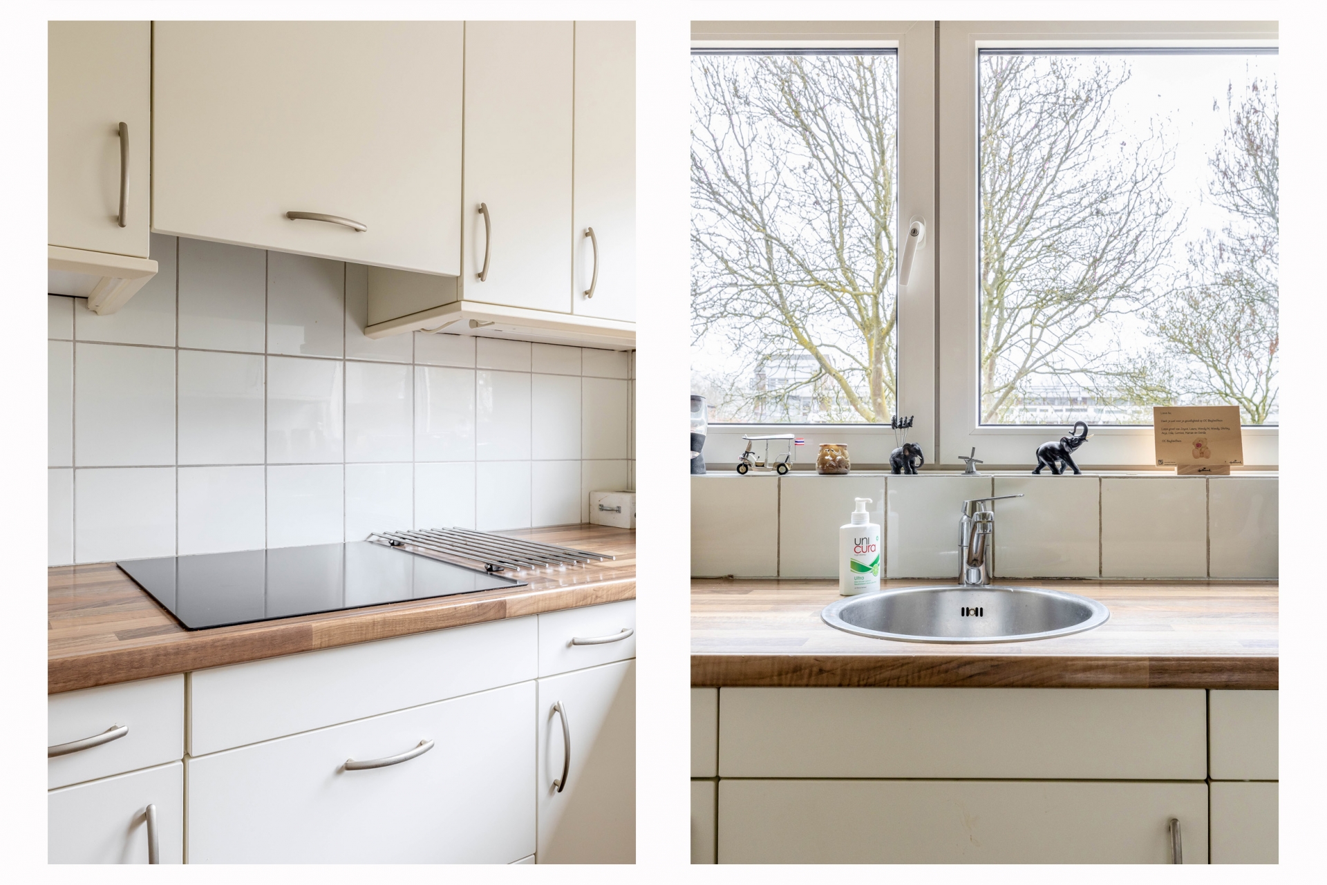 De keuken is functioneel ingericht en biedt alles wat je nodig hebt om lekker te koken. Er is voldoende werk- en bergruimte en door de opstelling heb je goed overzicht. Vanuit de keuken heb je vrij zicht naar buiten, wat zorgt voor een fijne verbinding met de speeltuin. De basis is goed, waardoor je hier eenvoudig je eigen stijl en afwerking aan kunt geven.