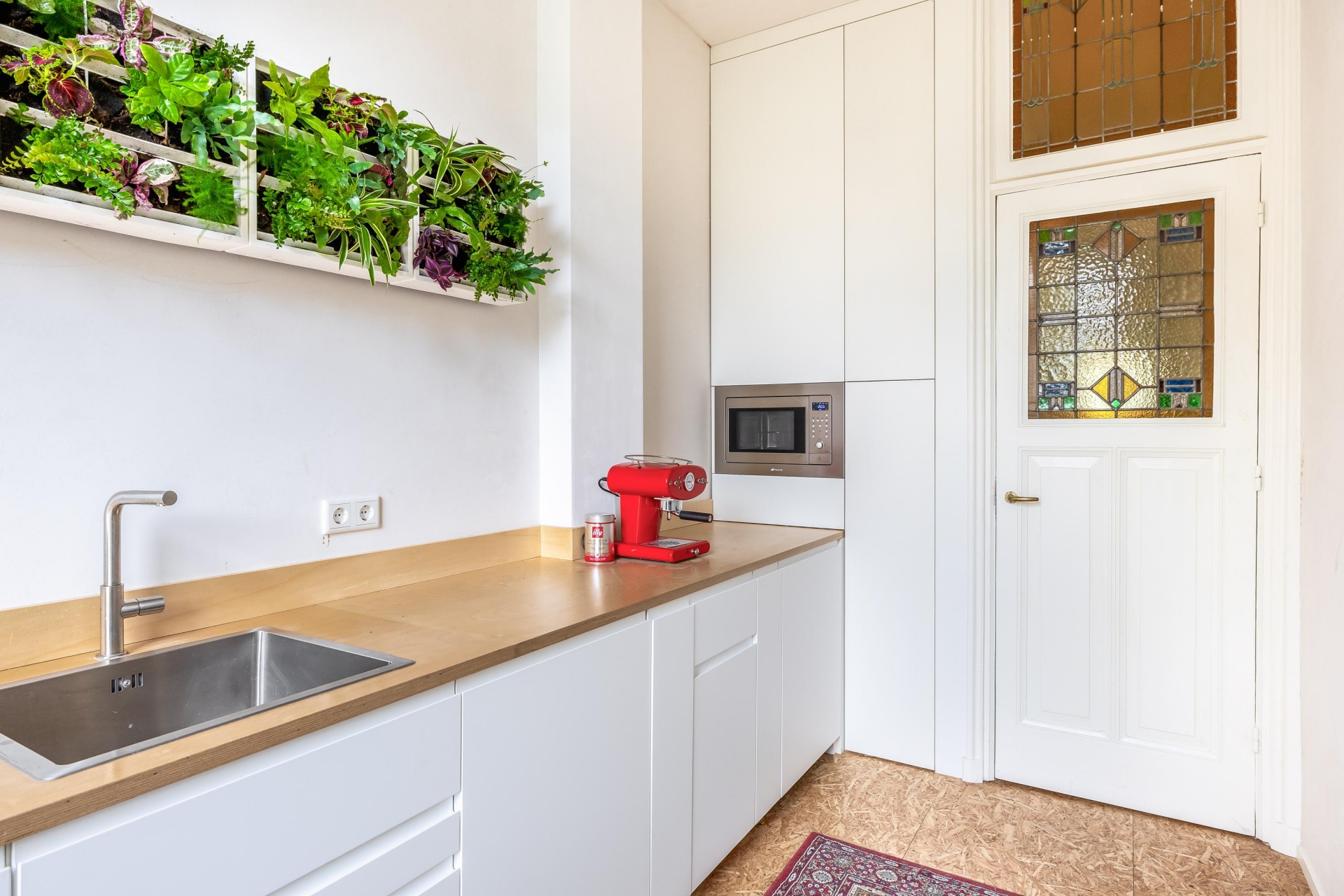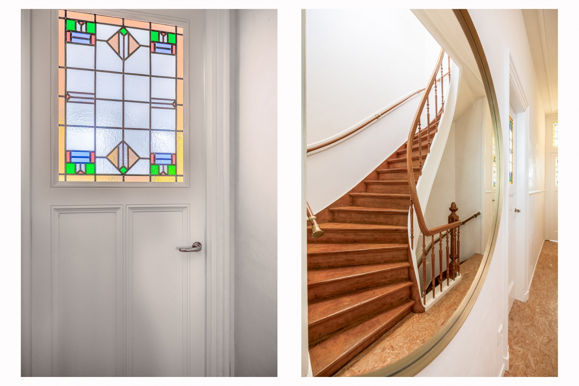 De woning is met veel liefde en visie verbouwd onder leiding van de huidige eigenaresse, die zelf architect is. Originele elementen zoals glas-in-loodramen, paneeldeuren en plafondornamenten zijn behouden gebleven en vormen een prachtig contrast met de moderne afwerking, slimme maatwerkkasten en open ruimtes.