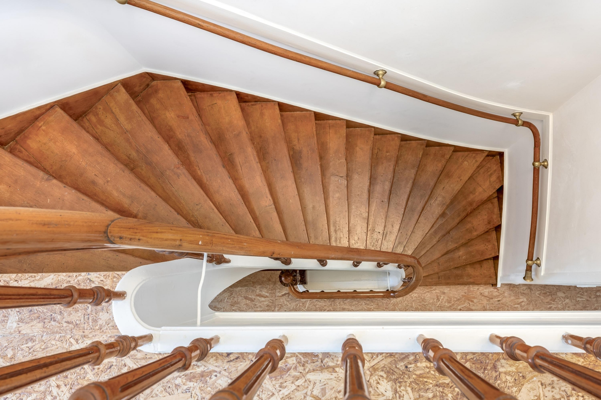 De vierde verdieping is nu ingericht als open slaap- en badruimte, met zichtbare houten balken, dubbele wastafels, veel opbergruimte en een vrijstaand ligbad. Een heerlijke plek waar je kunt ontspannen en wegkruipen van de drukte van de dag. Dankzij het slimme ontwerp is er overal balans tussen karakter, openheid en privacy.