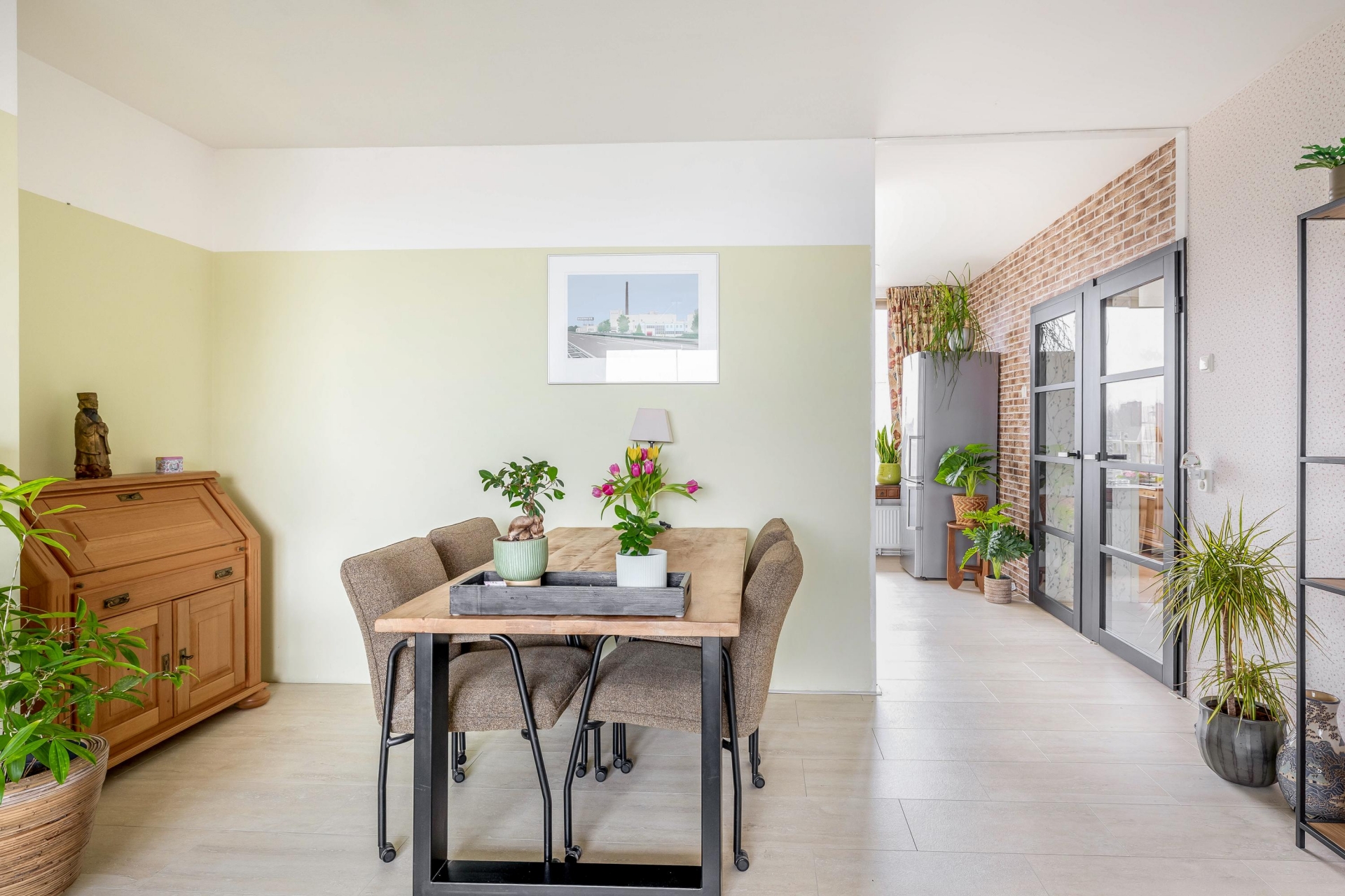 De open verbinding met de rest van het appartement zorgt voor een prettige flow. De sfeer is verzorgd, met neutrale kleuren en een nette afwerking. Hier kun je direct je meubels neerzetten en beginnen met wonen.