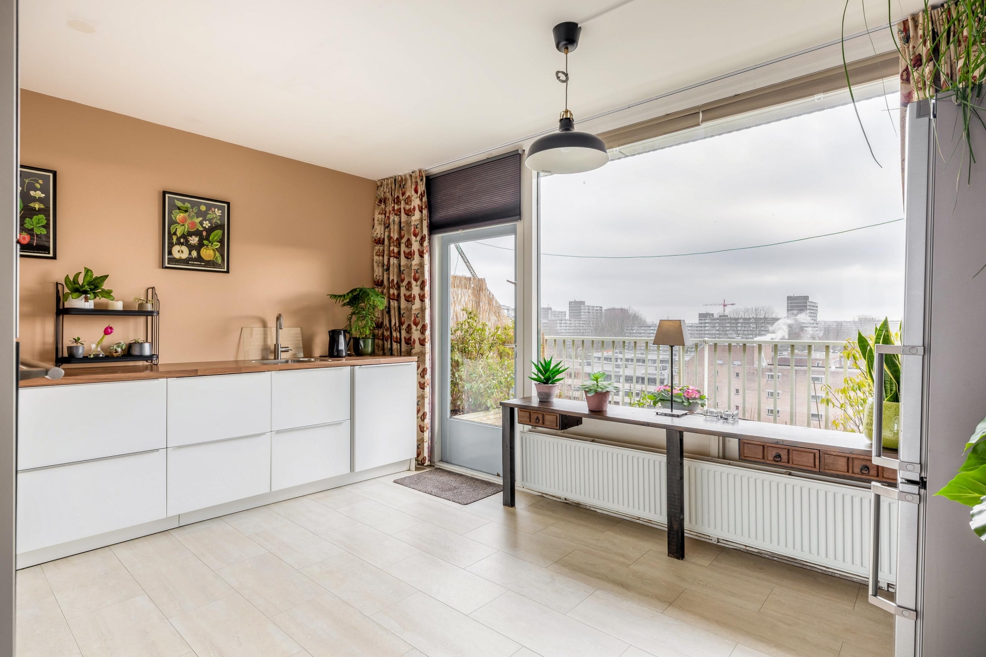 Vanuit de woonkamer heb je toegang tot één van de balkons. Het balkon op het westen is een heerlijke plek om na je werk nog even van de middag- en avondzon te genieten. Een kop koffie, een goed boek of een borrel terwijl de zon langzaam zakt – dit is genieten op hoogte.