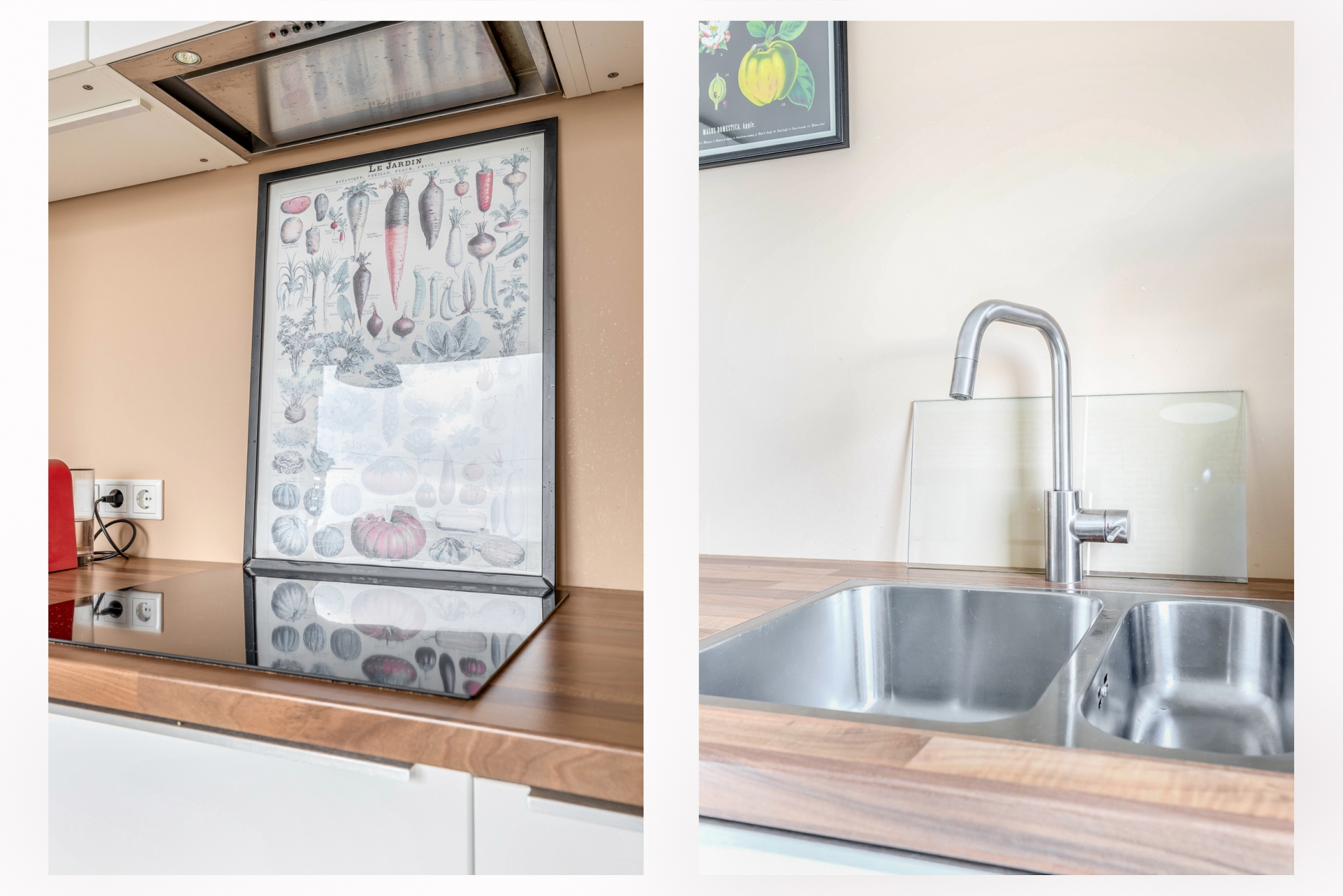 De keuken is strak uitgevoerd met lichte fronten en een warm houten werkblad. De opstelling is praktisch en biedt volop werk- en kastruimte. De inbouwapparatuur is netjes geïntegreerd en alles maakt een goed onderhouden indruk. Vanuit de keuken is er toegang tot het tweede balkon gelegen op het oosten, waardoor je hier ’s ochtends heerlijk in de zon zit. Een fijne manier om de dag te beginnen.