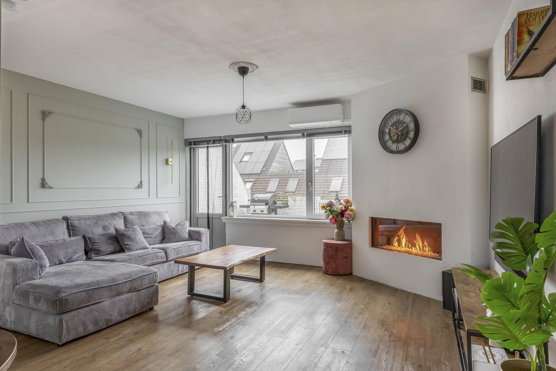 De eerste woonlaag is verrassend ruim en strak afgewerkt, met een warme houten vloer en lichte wanden die zorgen voor een prettige sfeer. De woonkamer voelt open en uitnodigend aan, met genoeg plek voor een gezellige zithoek en een aparte eethoek. Blikvanger is de sfeervolle gashaard, perfect voor koude avonden of gewoon voor wat extra gezelligheid. En ook in de zomer zit je hier en boven comfortabel, want in 2025 zijn er airco's geplaatst waarmee je het hele jaar door een aangenaam binnenklimaat hebt.