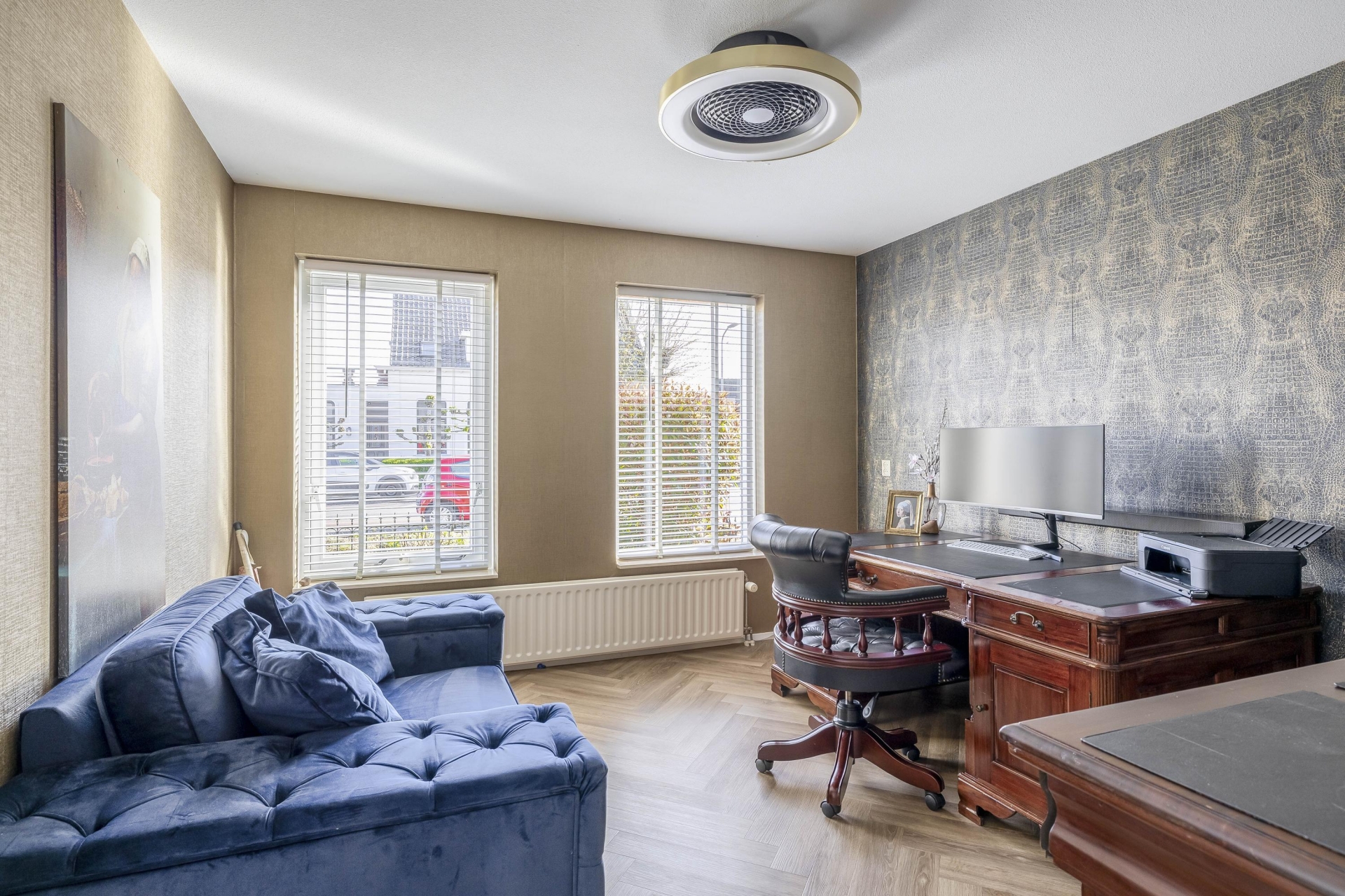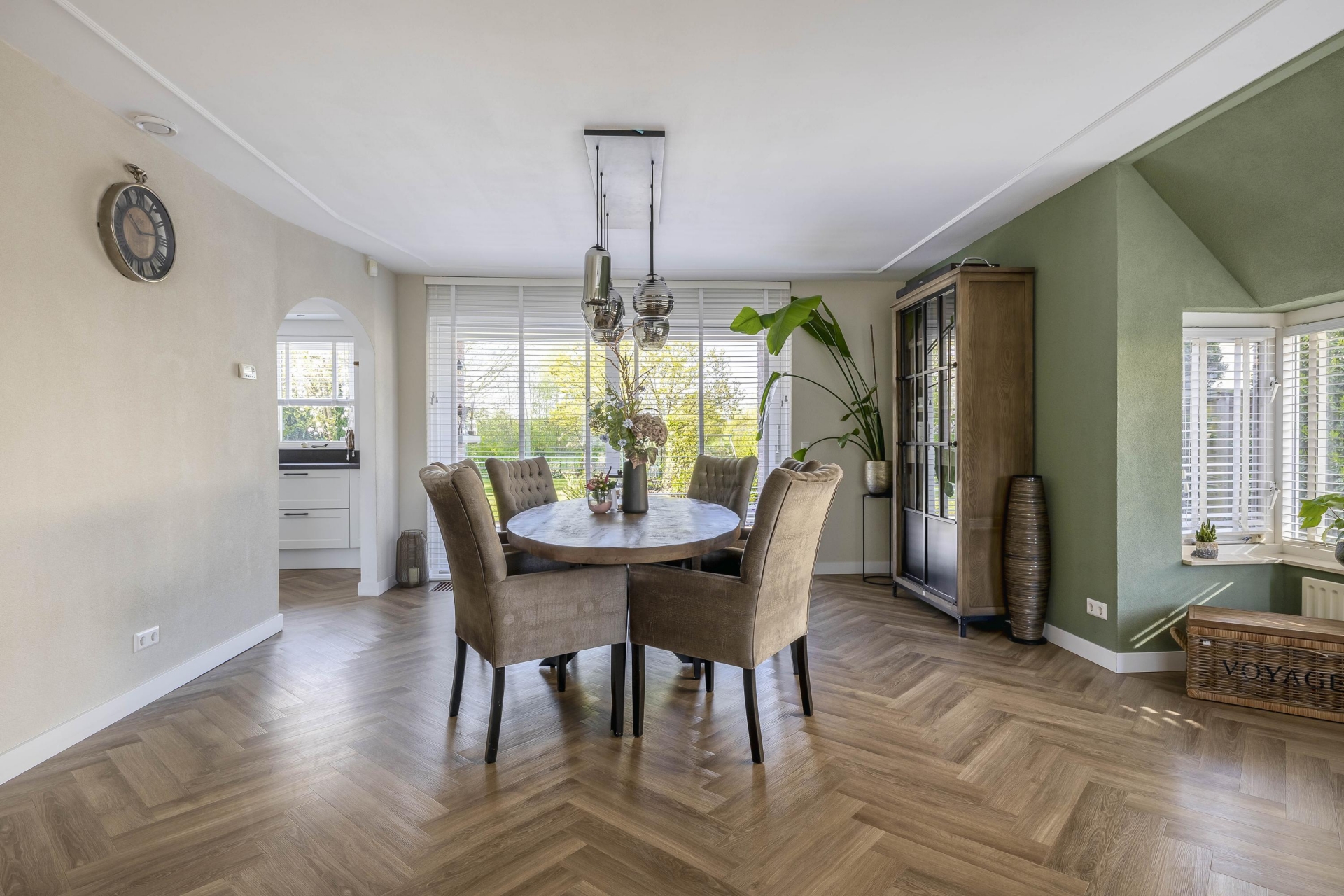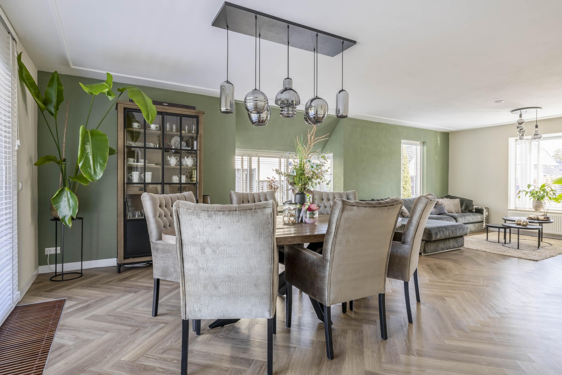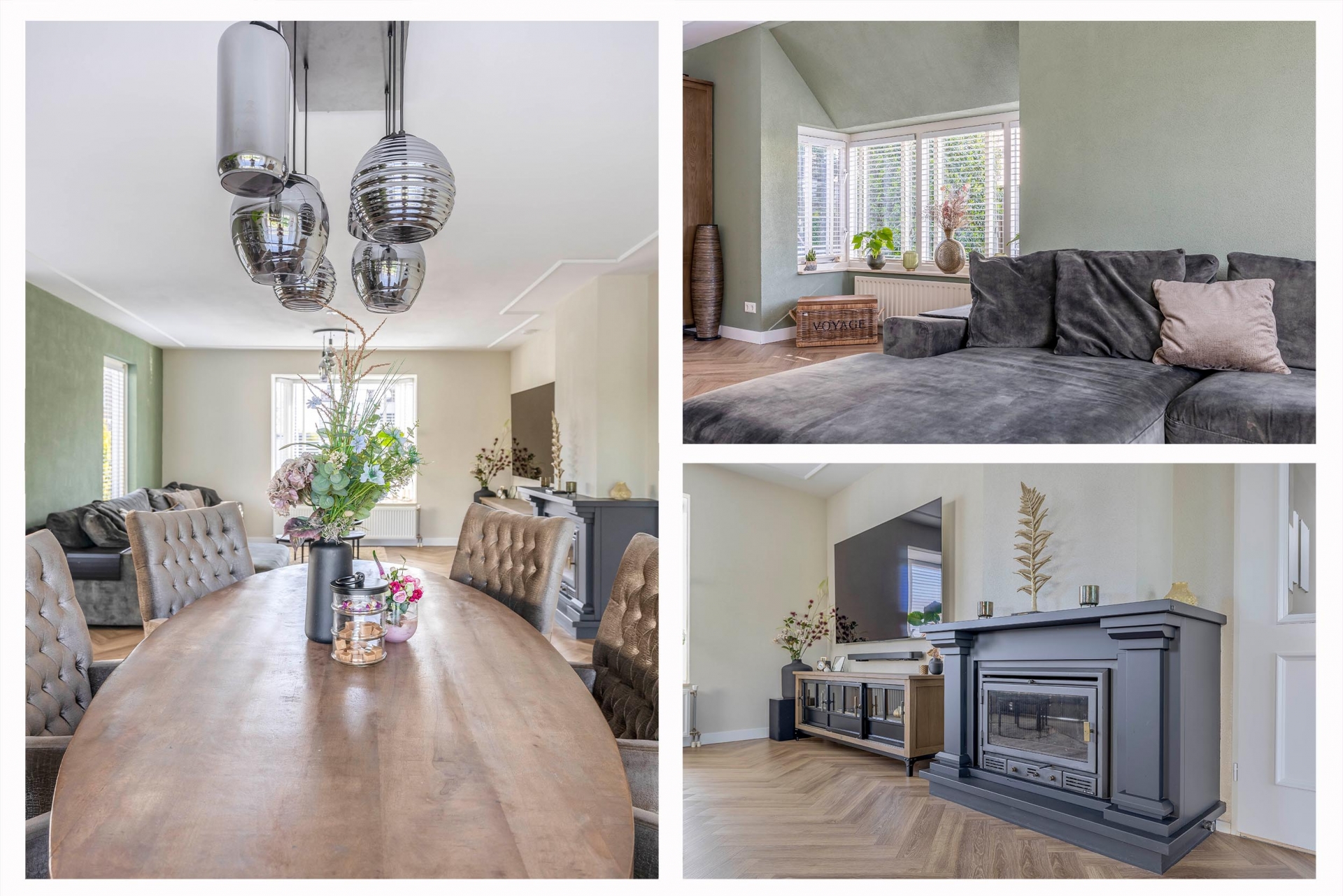 - Royale living met visgraat vloer en haard;