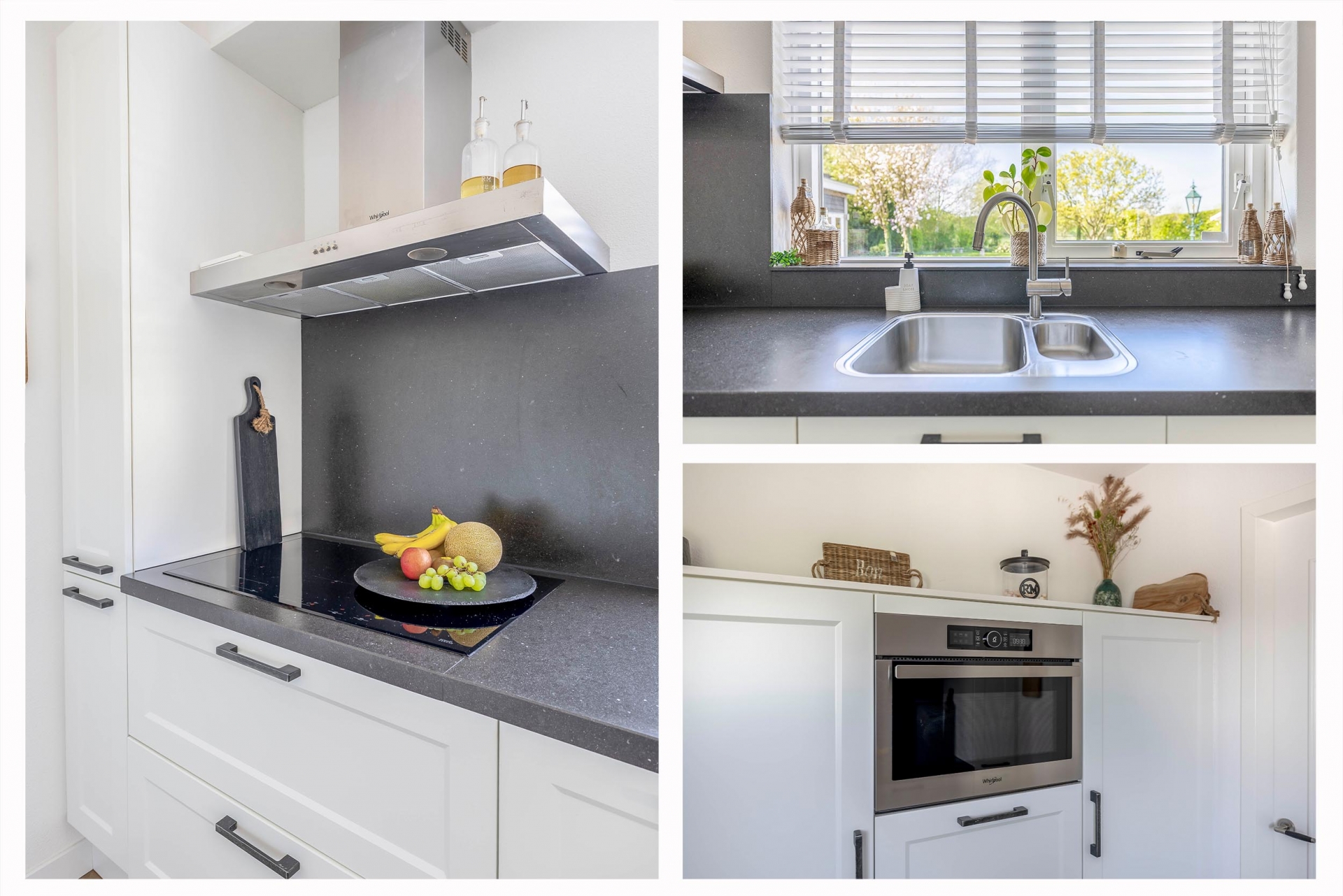 De moderne keuken is voorzien van diverse inbouwapparatuur: o.a. een koelkast, vriezer, combi-oven, vaatwasser en 5-pits inductiekookplaat met afzuigkap.