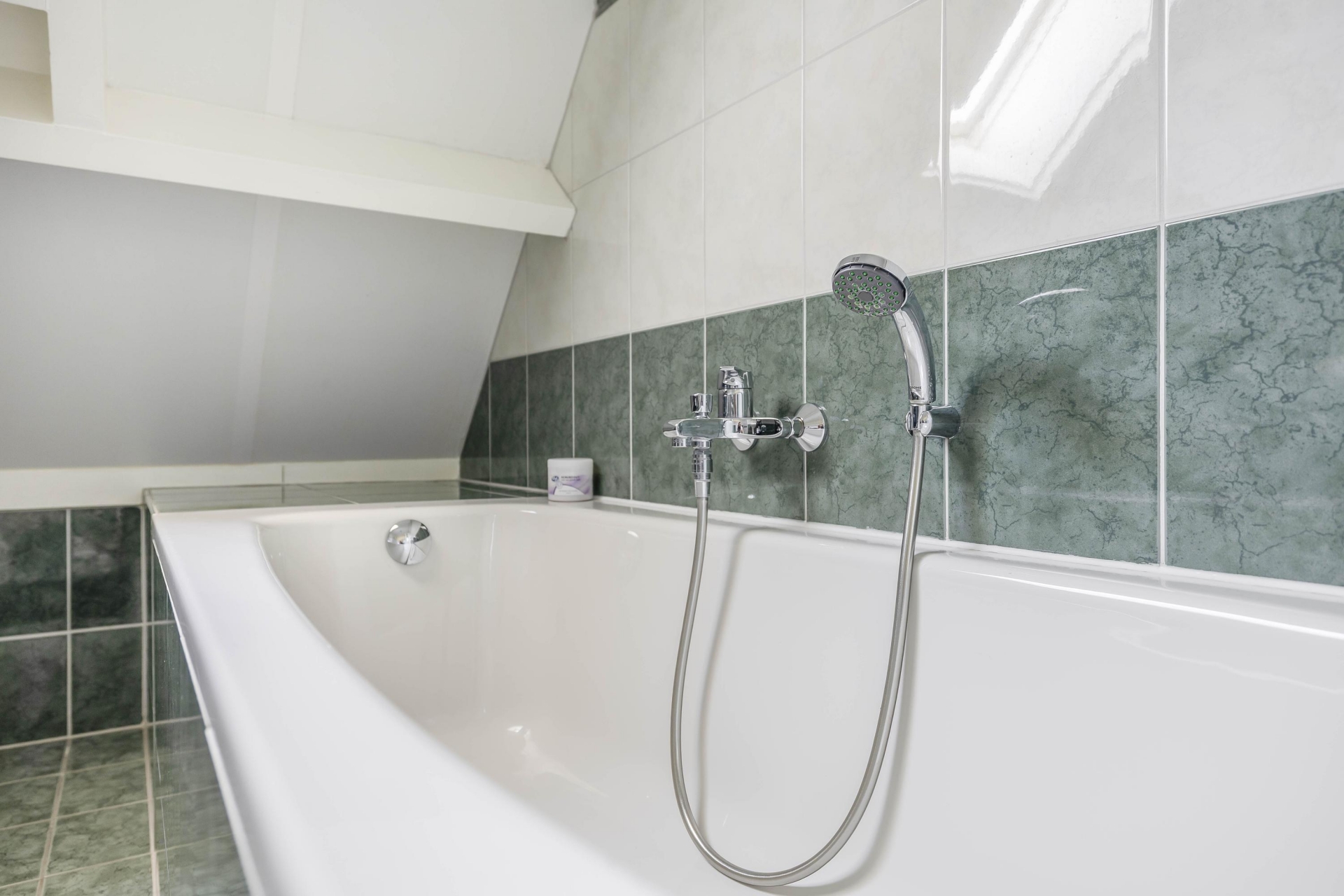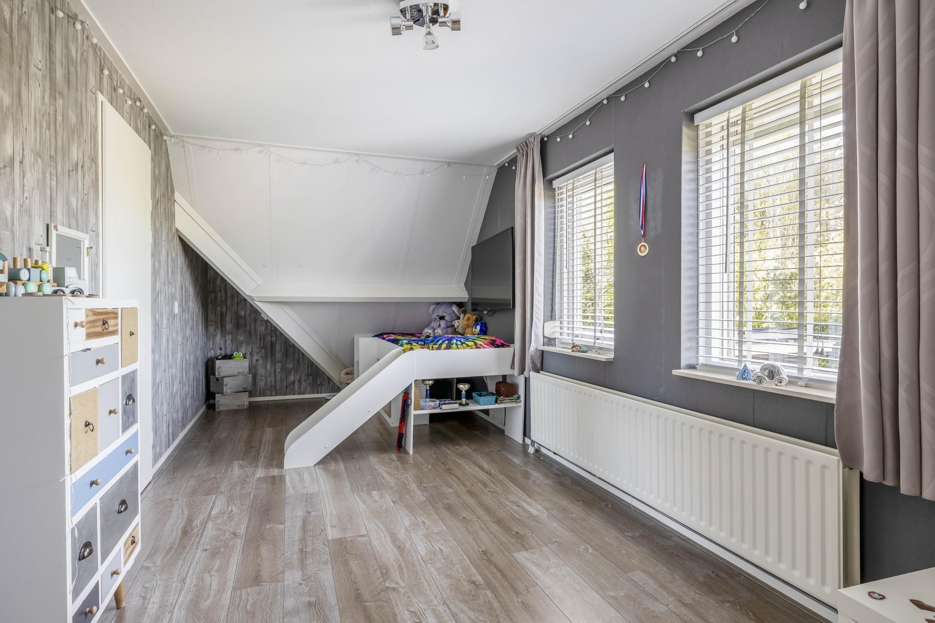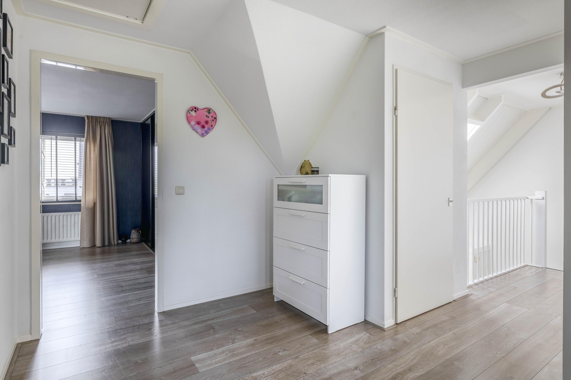 Via een vlizotrap op de overloop is de praktische bergzolder bereikbaar – ideaal voor het opbergen van seizoensspullen of archiefmateriaal.
