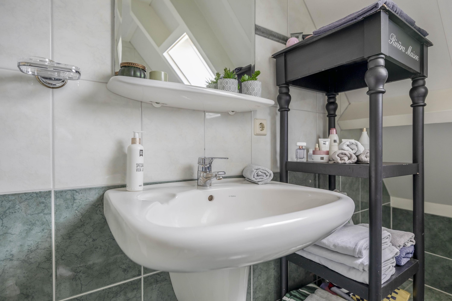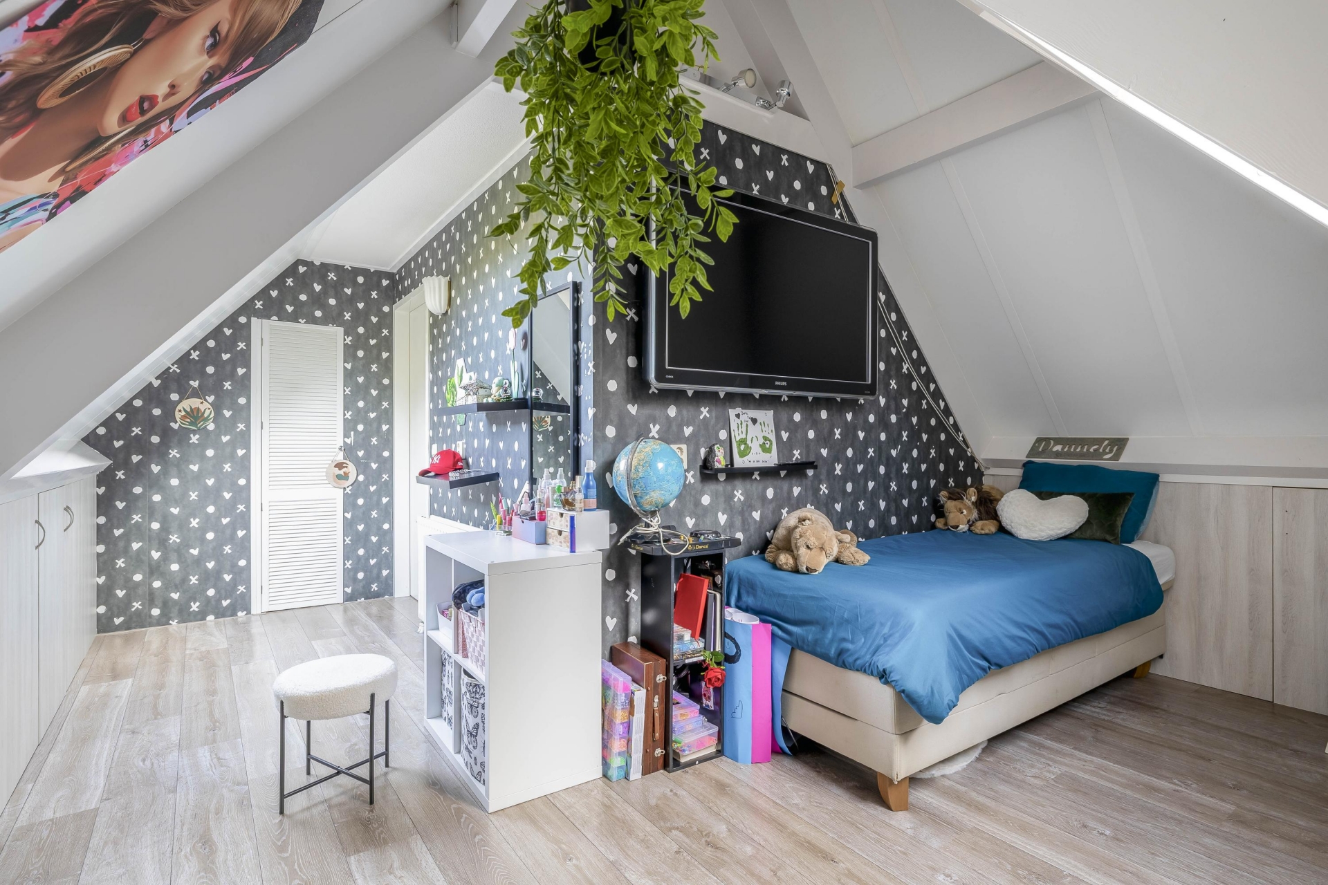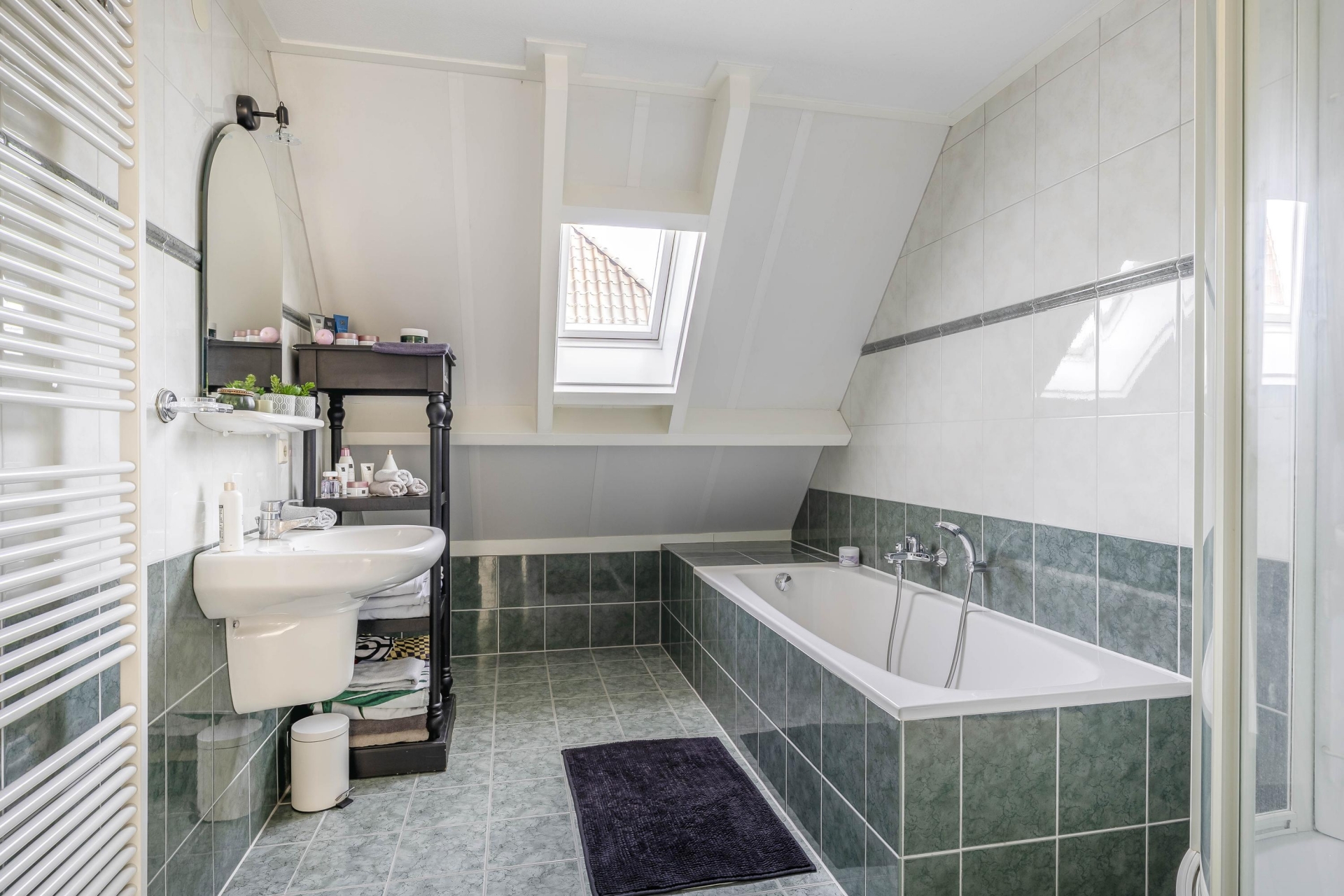 Via een vlizotrap op de overloop is de praktische bergzolder bereikbaar – ideaal voor het opbergen van seizoensspullen of archiefmateriaal.