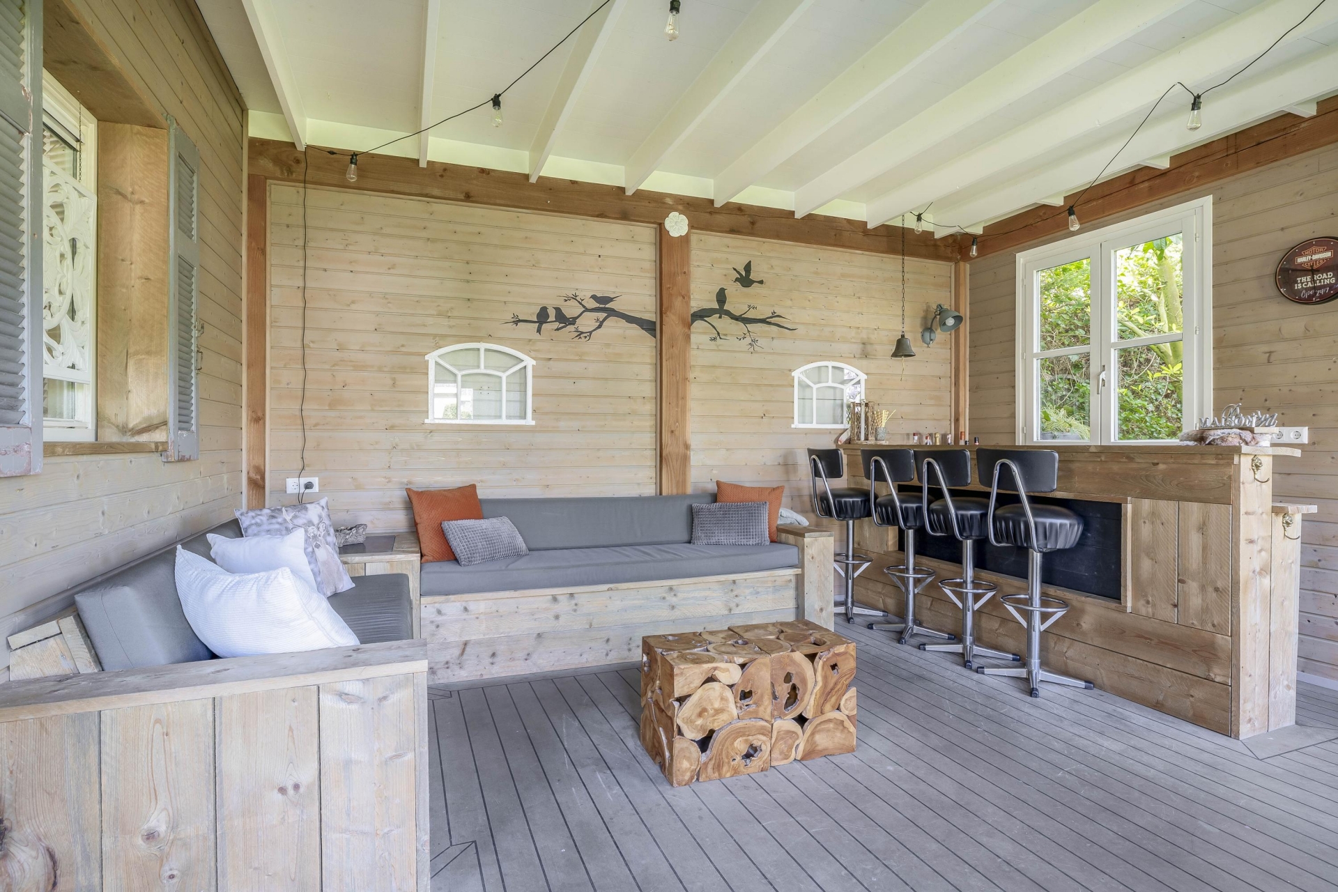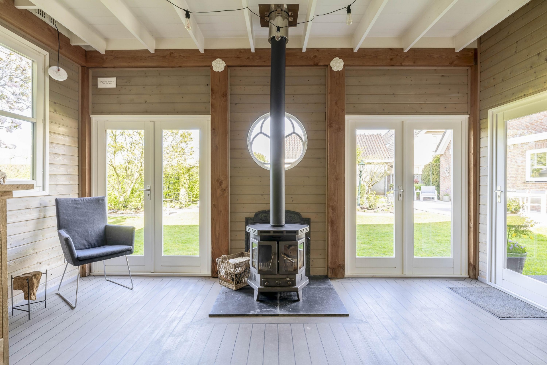 - Buitenverblijf/chalet met veranda en houtkachel;