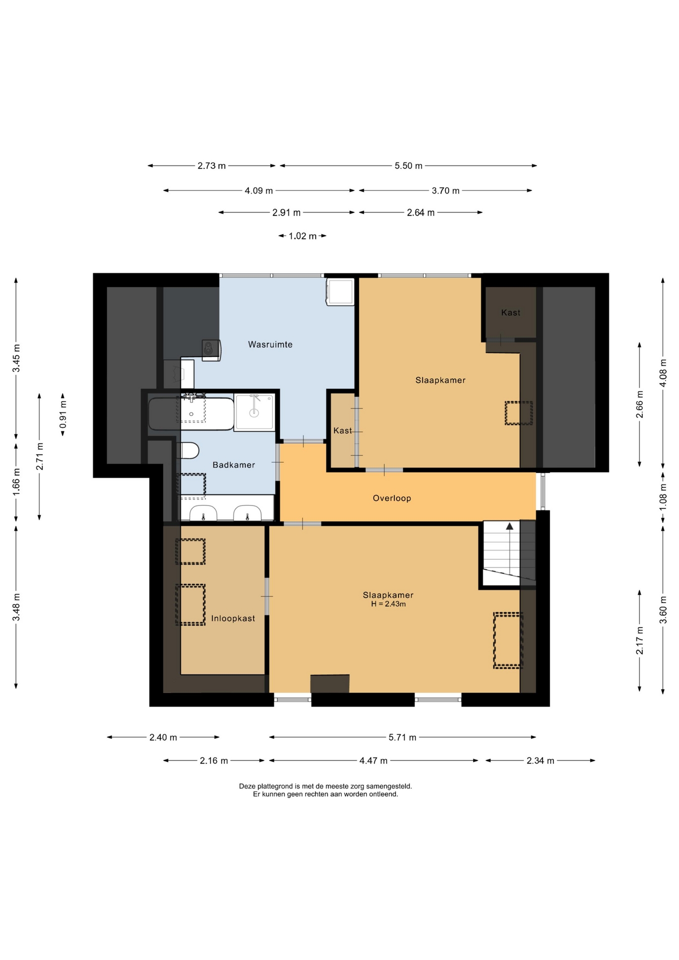 “Deze informatie is door ons met de nodige zorgvuldigheid samengesteld. Onzerzijds wordt echter geen enkele aansprakelijkheid aanvaard voor enige onvolledigheid, onjuistheid of anderszins, dan wel de gevolgen daarvan. Alle opgegeven maten en oppervlakten zijn indicatief.