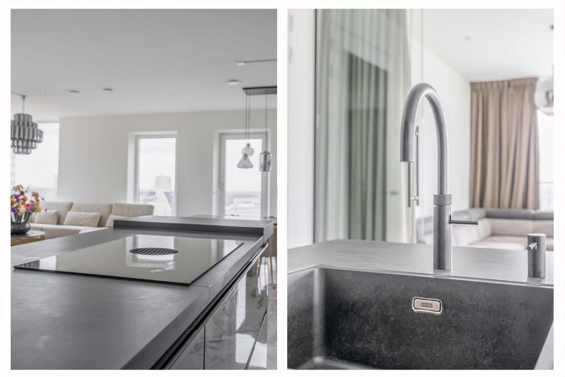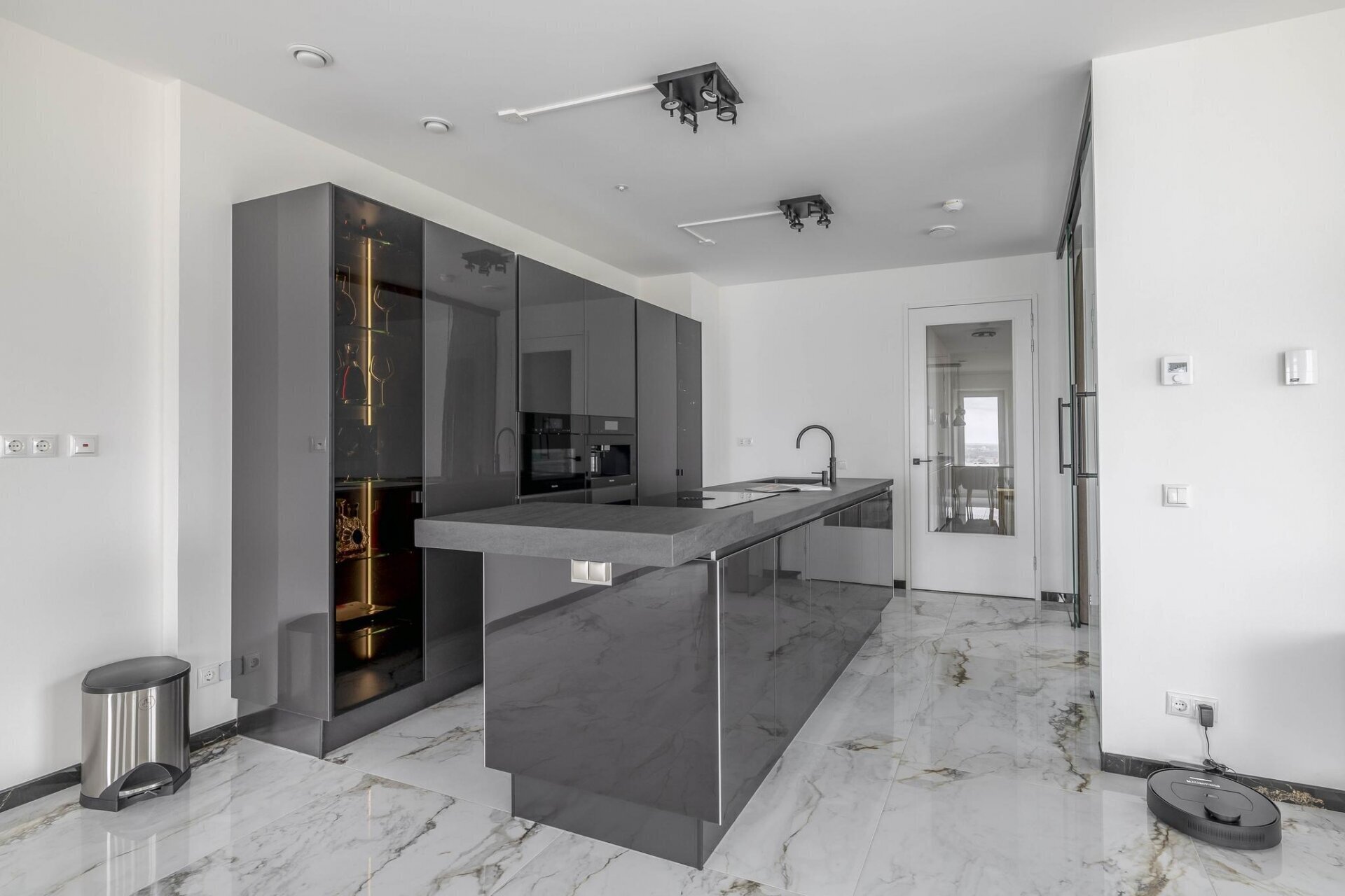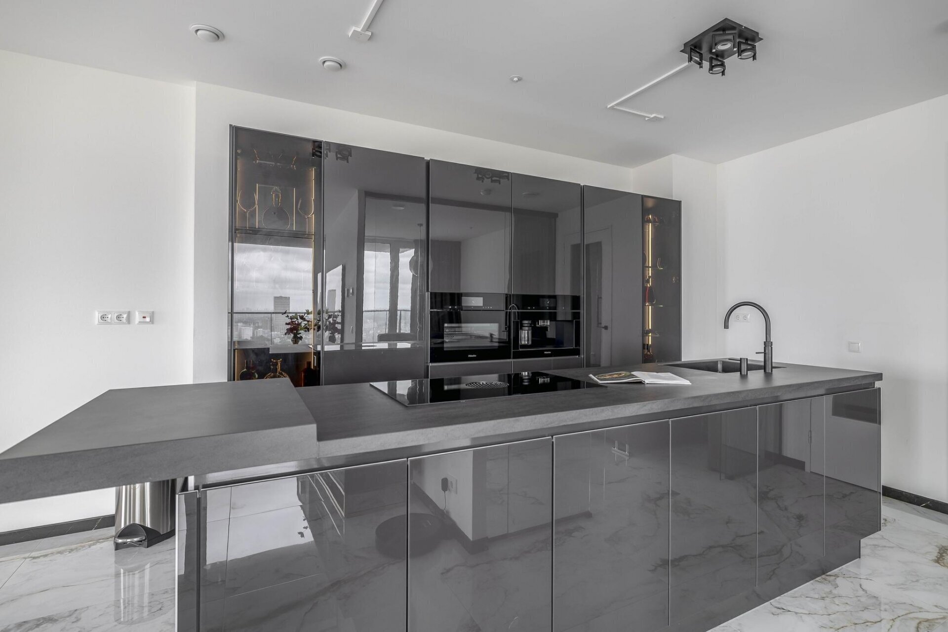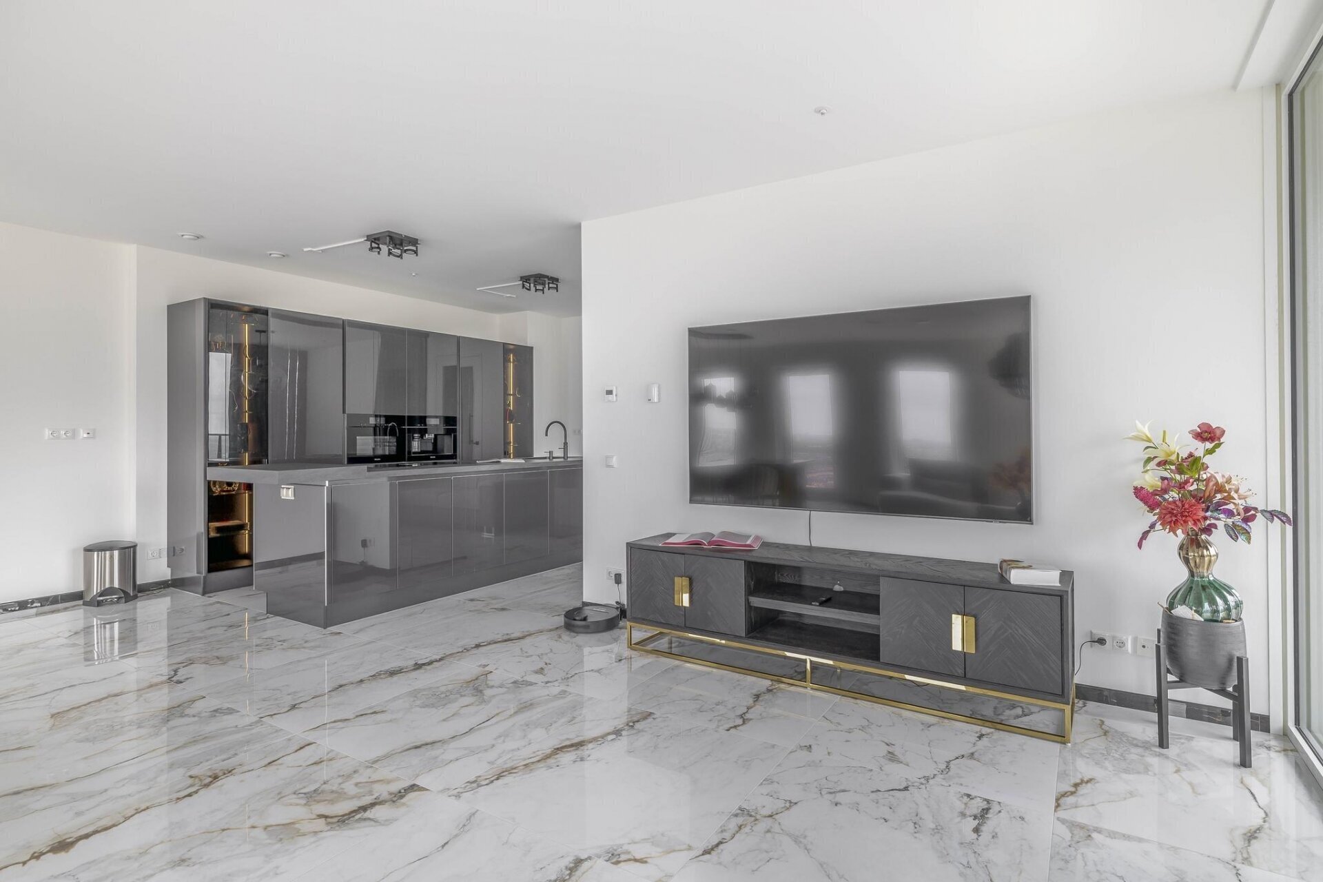 De living is royaal, licht en biedt een naadloze overgang naar de luxe keuken met kookeiland. De keuken is uitgerust met hoogwaardige inbouwapparatuur – perfect voor culinaire liefhebbers. Door de slimme indeling voelt het appartement als een harmonieuze leefruimte waarin elke hoek klopt.