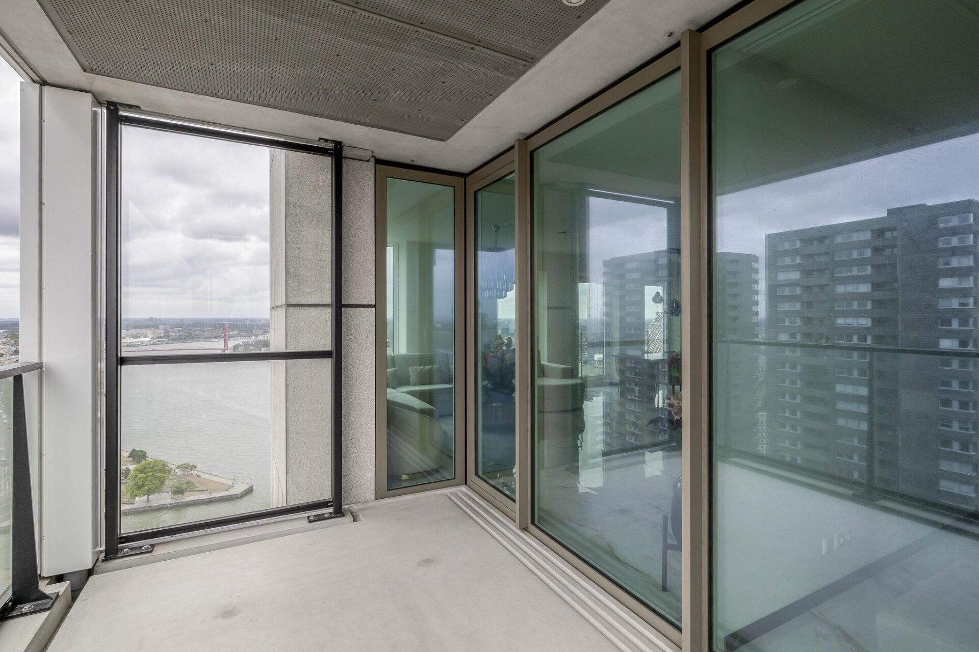 Op de 26e verdieping van de iconische Zalmhaven-toren bevindt zich dit stijlvolle appartement van maar liefst 129 m². Vanaf hier kijk je vrijuit over de bruisende stad, de glinsterende Nieuwe Maas én zie je de zon ondergaan vanaf je privéterrassen. Dit is wonen met het hoogste perspectief – letterlijk én figuurlijk.