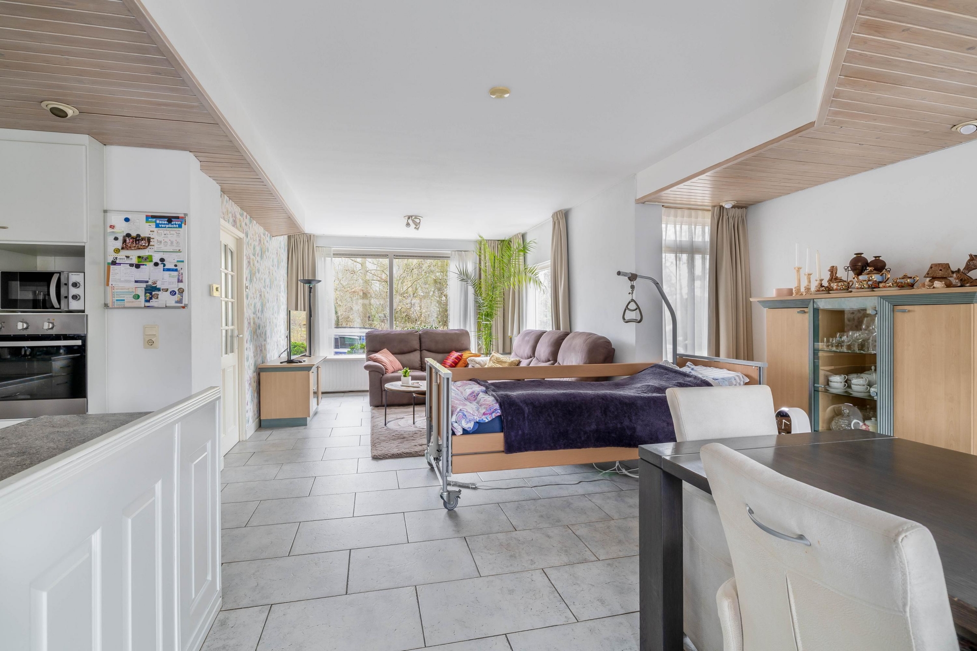De ruime woonkamer is zowel aan de zij- als achterkant uitgebouwd en is licht dankzij de grote ramen aan de voor- en achterzijde. De open keuken staat in verbinding met de eetkamer en is slim ingedeeld met veel kastruimte en werkblad. Er is plek genoeg voor een grote eettafel, ideaal voor gezellige etentjes met vrienden of gewoon lekker met het gezin.