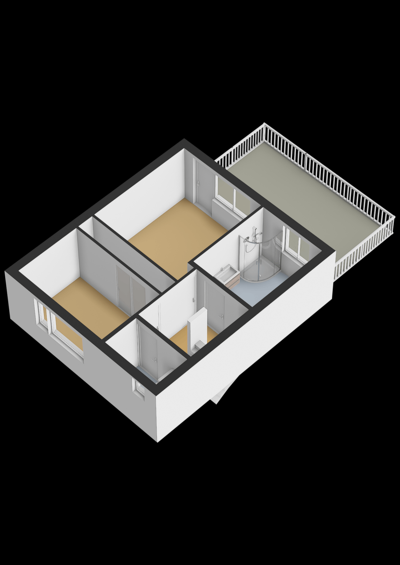Op de eerste verdieping zijn twee slaapkamers en een ruime badkamer te vinden. De grootste slaapkamer ligt aan de achterzijde en geeft toegang tot een royaal balkon over de volle breedte van het huis. De tweede slaapkamer is aan de voorzijde gelegen en praktisch van formaat. Verder is er op deze verdieping nog een aparte wasruimte en een inbouwkast.