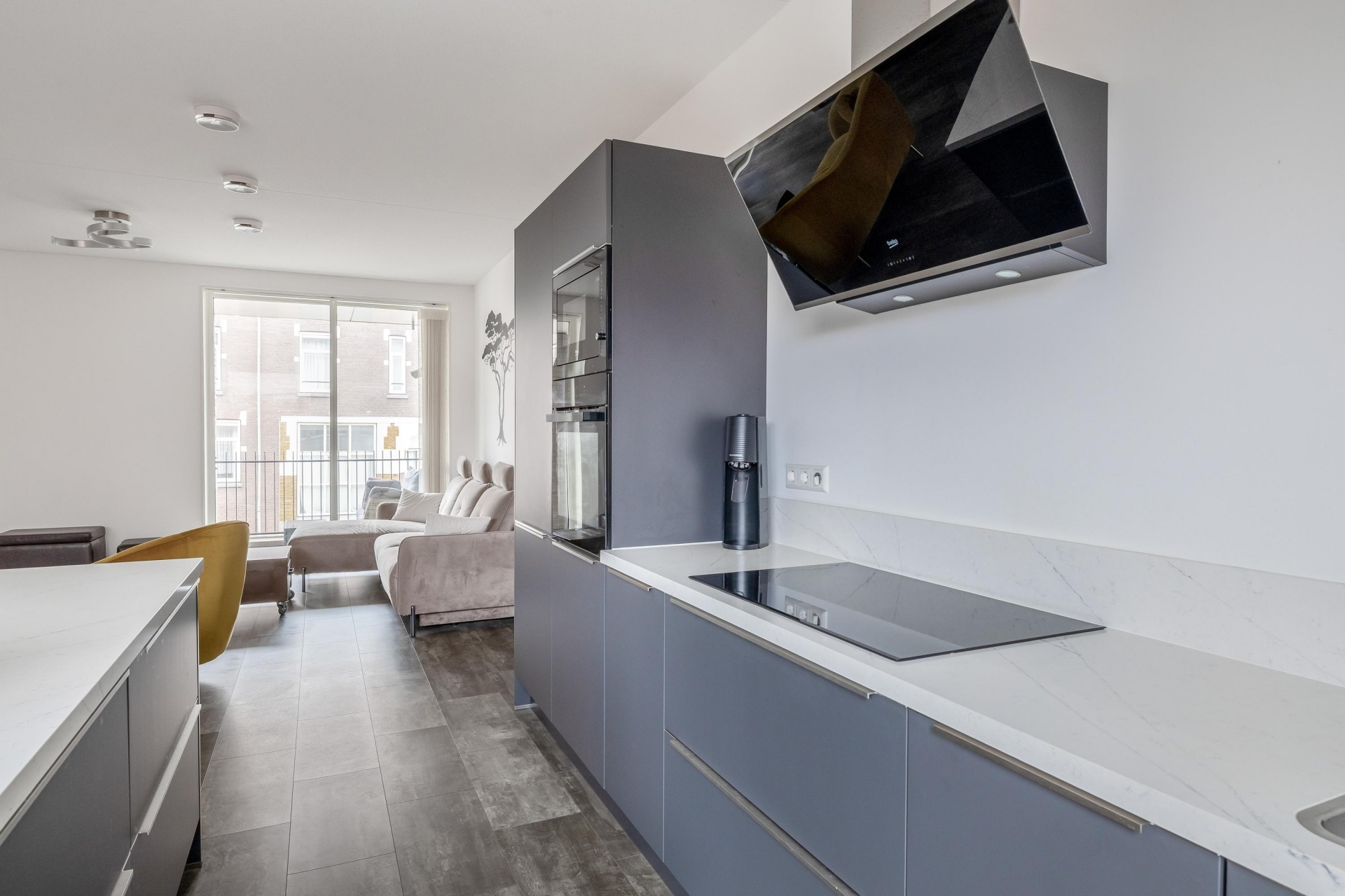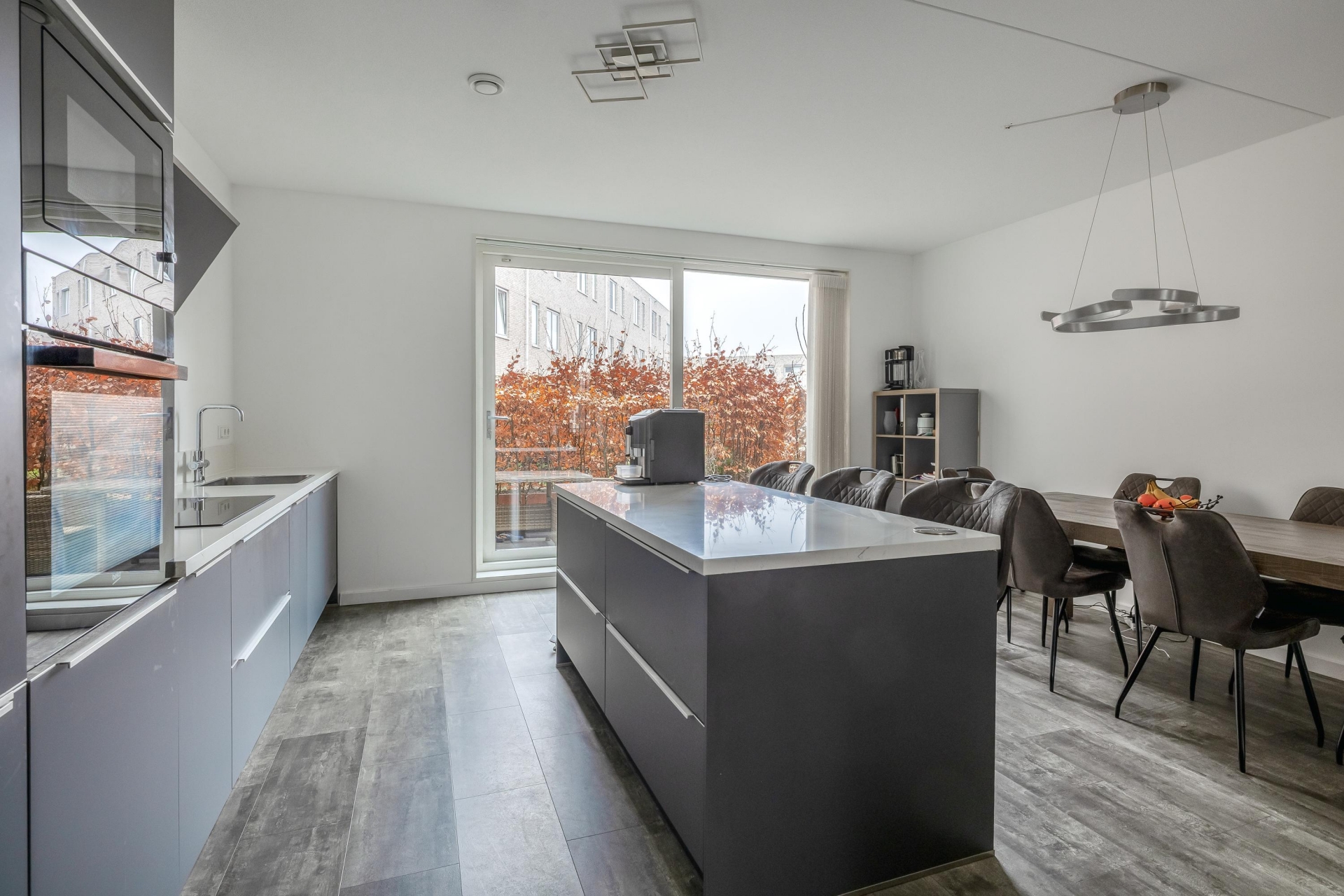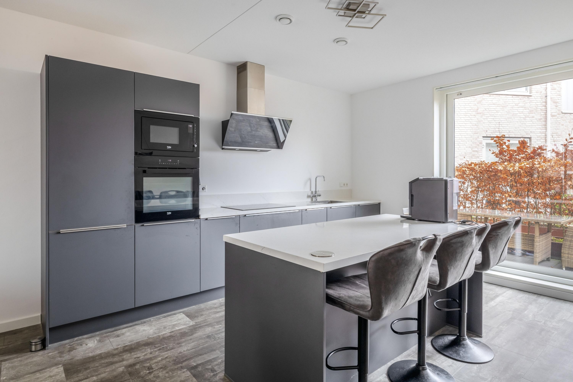 De keuken vormt het elegante hart van deze woning. Het eiland biedt niet alleen extra werk- en opbergruimte, maar fungeert ook als natuurlijke ontmoetingsplek voor borrelen en samen genieten. De moderne inbouwapparatuur en de Ace Boil 3-in-1 kokend water kraan zorgen voor een keuken die zowel functioneel als stijlvol is. Hier voelt elke maaltijd, van ontbijt tot diner, als een bijzonder moment. Voor de liefhebbers van koken én gastvrijheid is dit zonder twijfel een absolute troef.