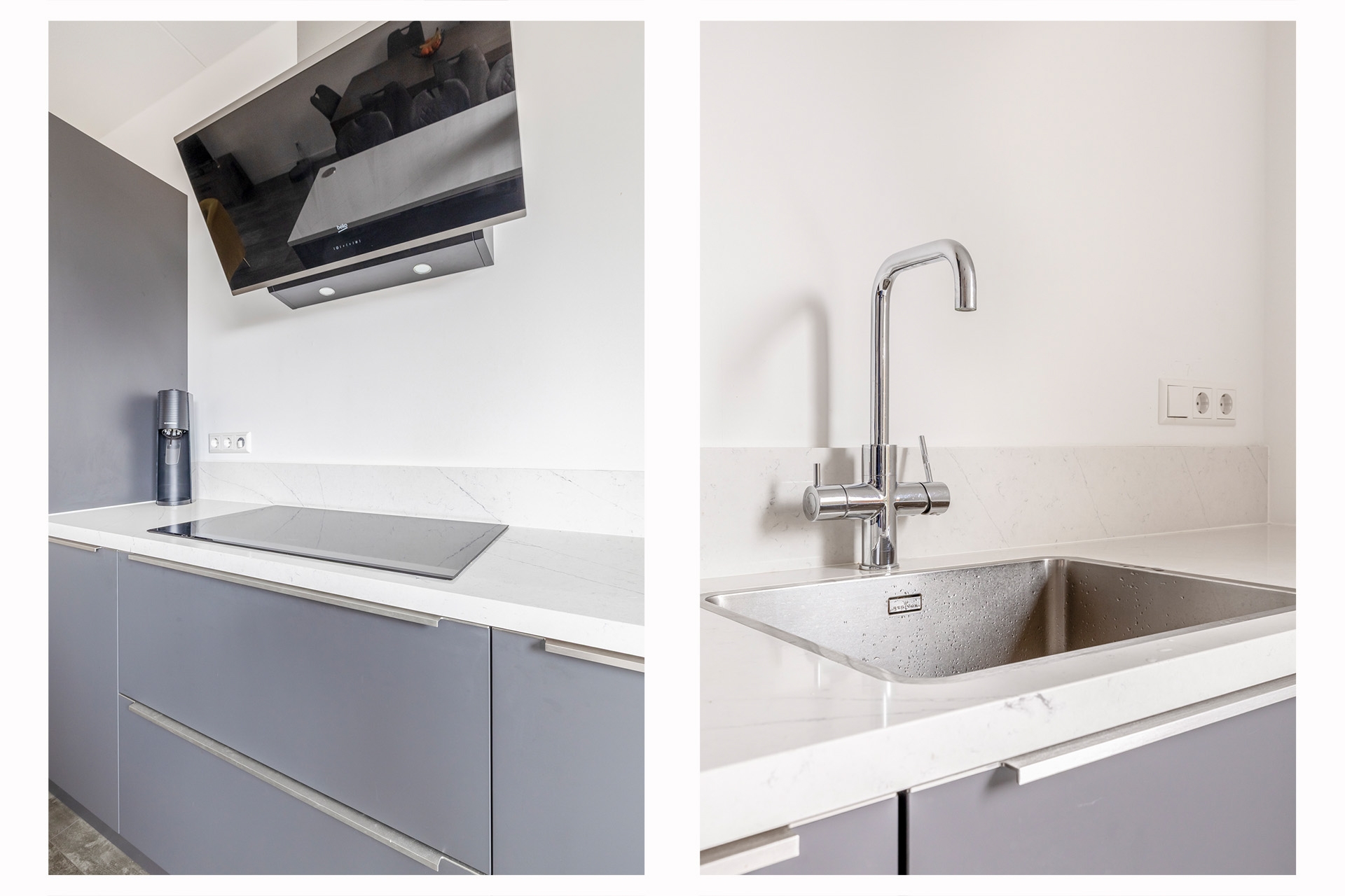 - Moderne keuken met eiland en Ace Boil 3-in-1 kokend water kraan