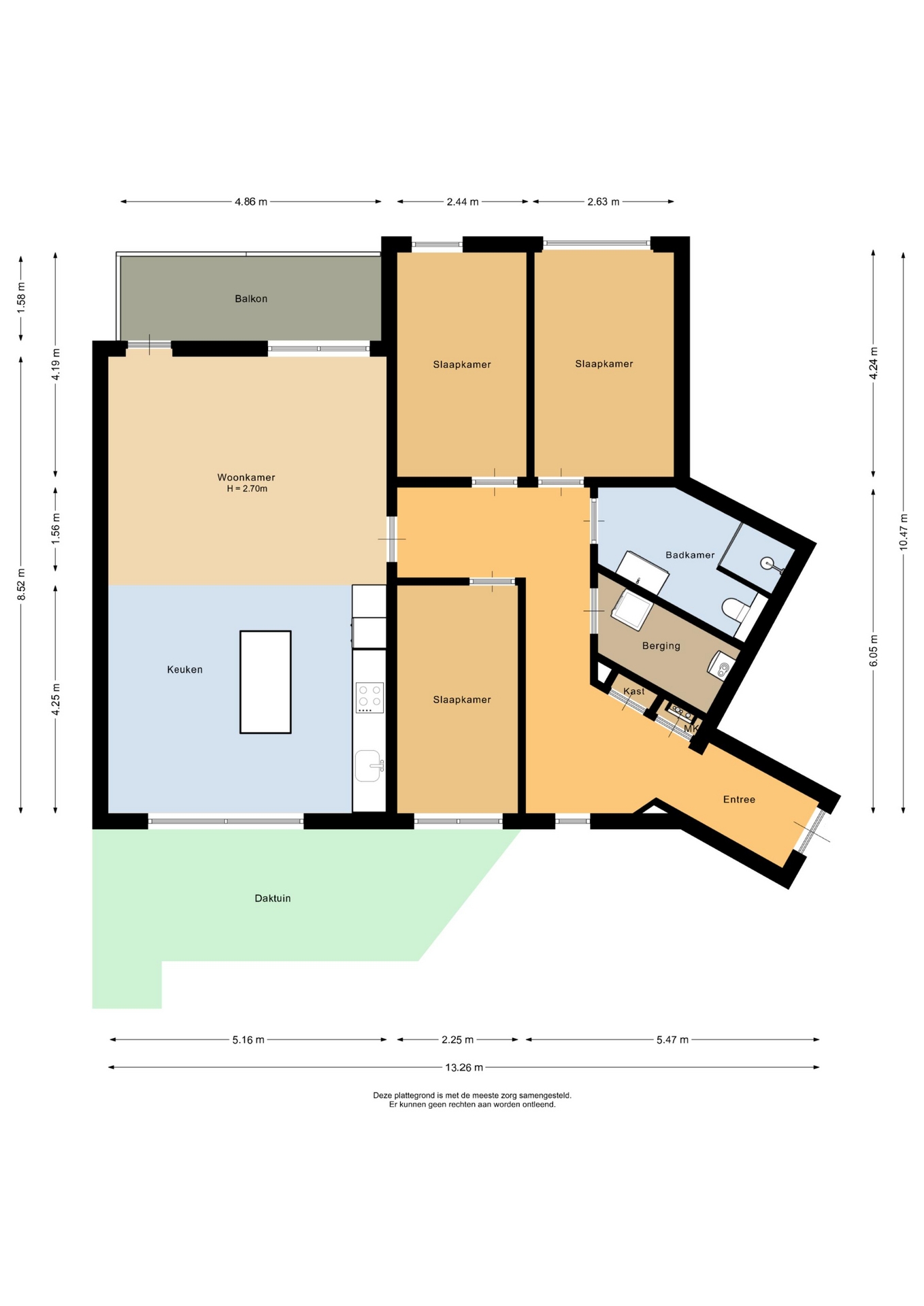 “Deze informatie is door ons met de nodige zorgvuldigheid samengesteld. Onzerzijds wordt echter geen enkele aansprakelijkheid aanvaard voor enige onvolledigheid, onjuistheid of anderszins, dan wel de gevolgen daarvan. Alle opgegeven maten en oppervlakten zijn indicatief.”