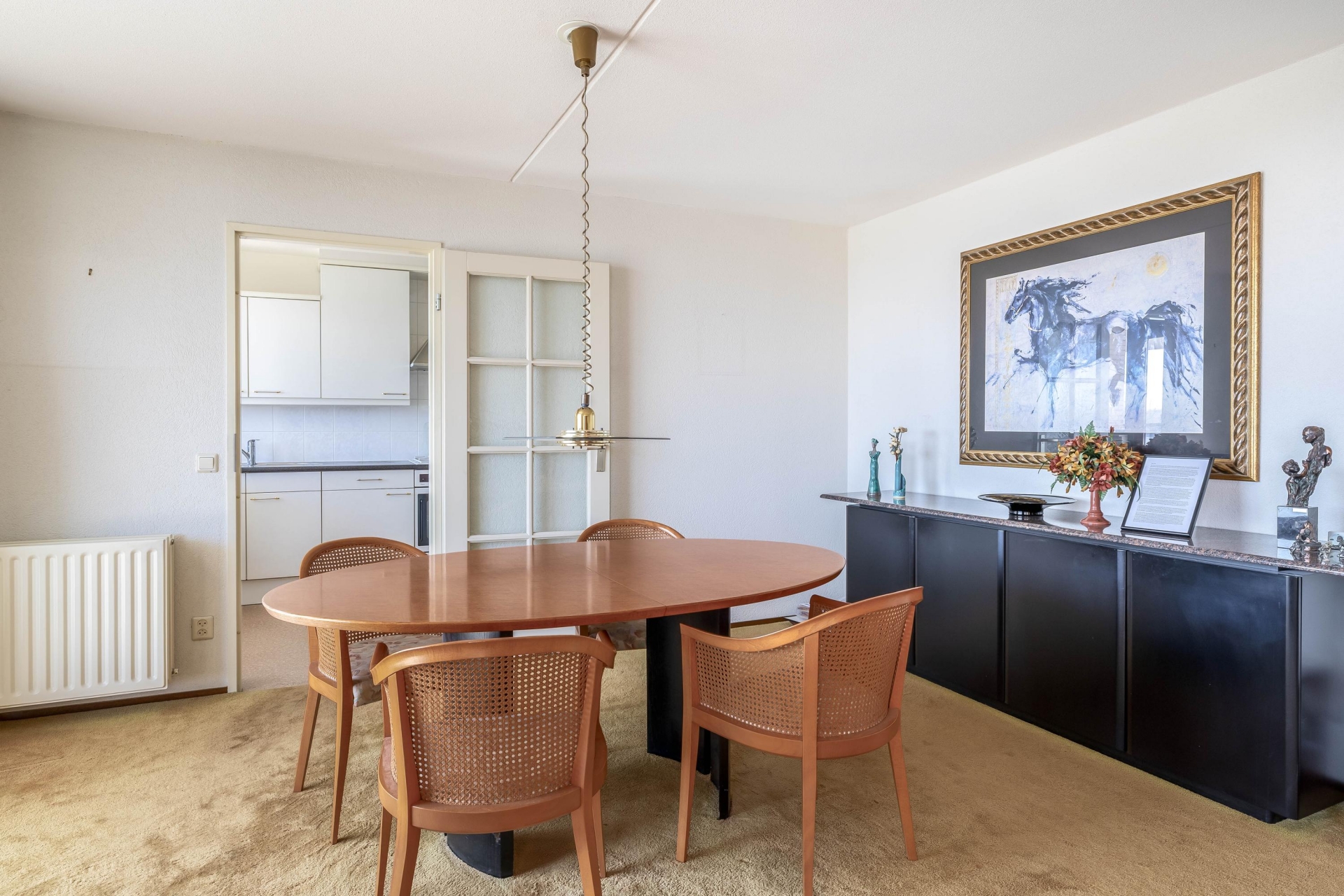 Het appartement beschikt over een lichte woonkamer met eetkamer. Door de grote aanwezige raampartijen is er een fraai wijds uitzicht. Zowel vanuit de hal, als vanuit de eetkamer, is de keuken toegankelijk. Hier grenst ook het zonnige balkon aan. Verder beschikt het appartement over 3 slaapkamers, waarvan de master bedroom beschikt over een badkamer en-suite, en daarnaast nog een 2e badkamer, separaat het toilet, een inpandige berging en een royale inloopkast. Kortom hier gaat u niets te kort komen!