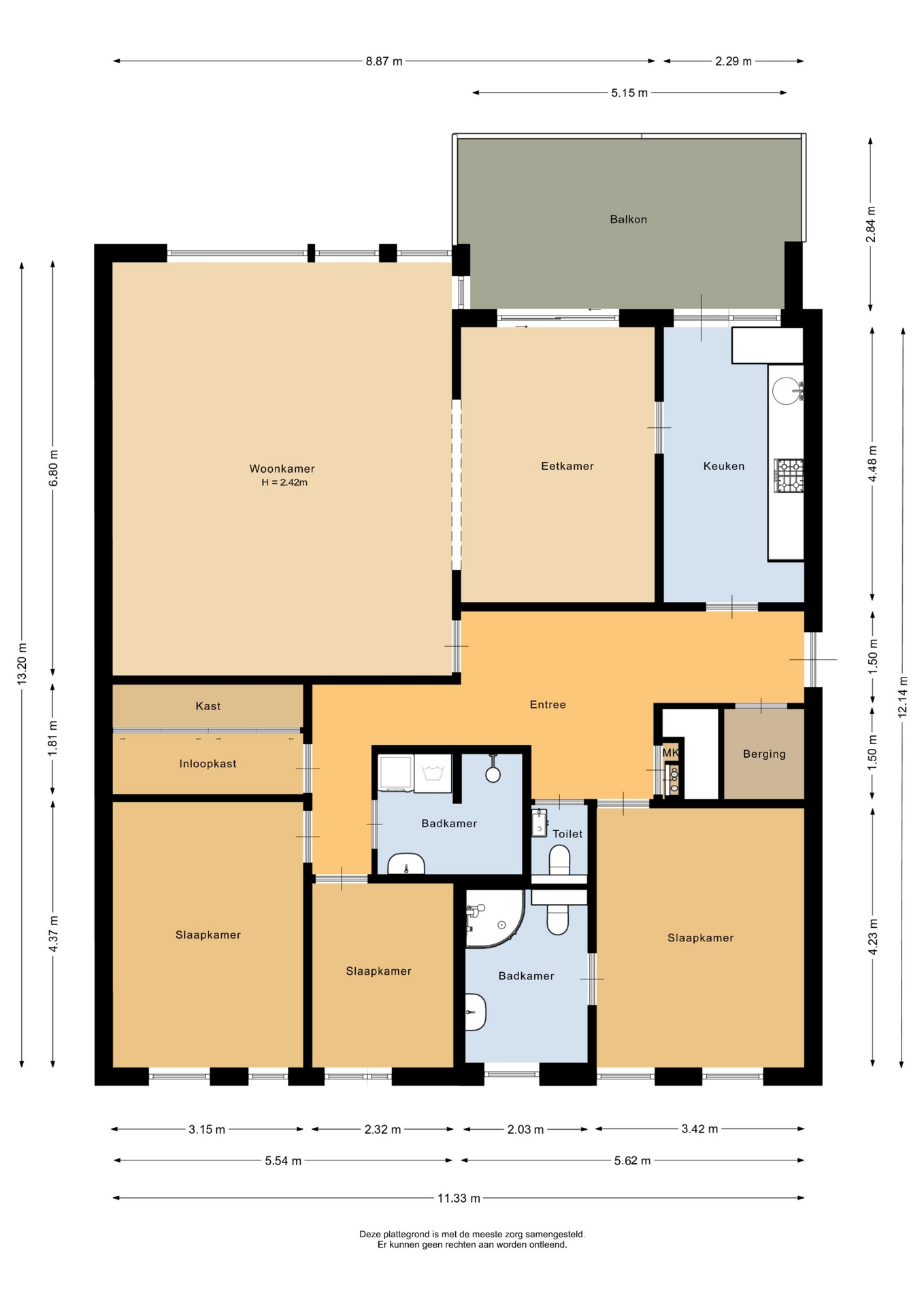 “Deze informatie is door ons met de nodige zorgvuldigheid samengesteld. Onzerzijds wordt echter geen enkele aansprakelijkheid aanvaard voor enige onvolledigheid, onjuistheid of anderszins, dan wel de gevolgen daarvan. Alle opgegeven maten en oppervlakten zijn indicatief.”