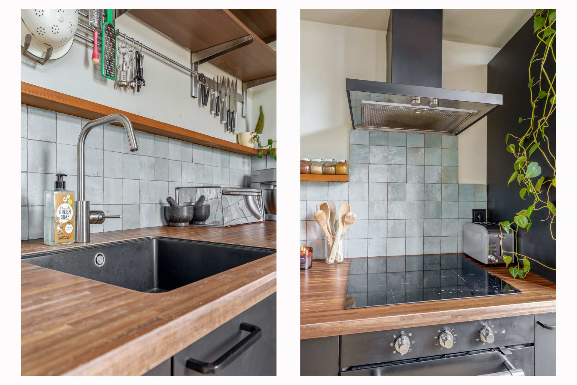 De keuken bevindt zich aan de achterzijde van de woning en is in een L-opstelling geplaatst. De keuken is onder meer voorzien van een 4 pits inductiekookplaat, afzuigkap, spoelbak en een koel-vriescombinatie. Vanuit de keuken is er tevens toegang tot de achtertuin.