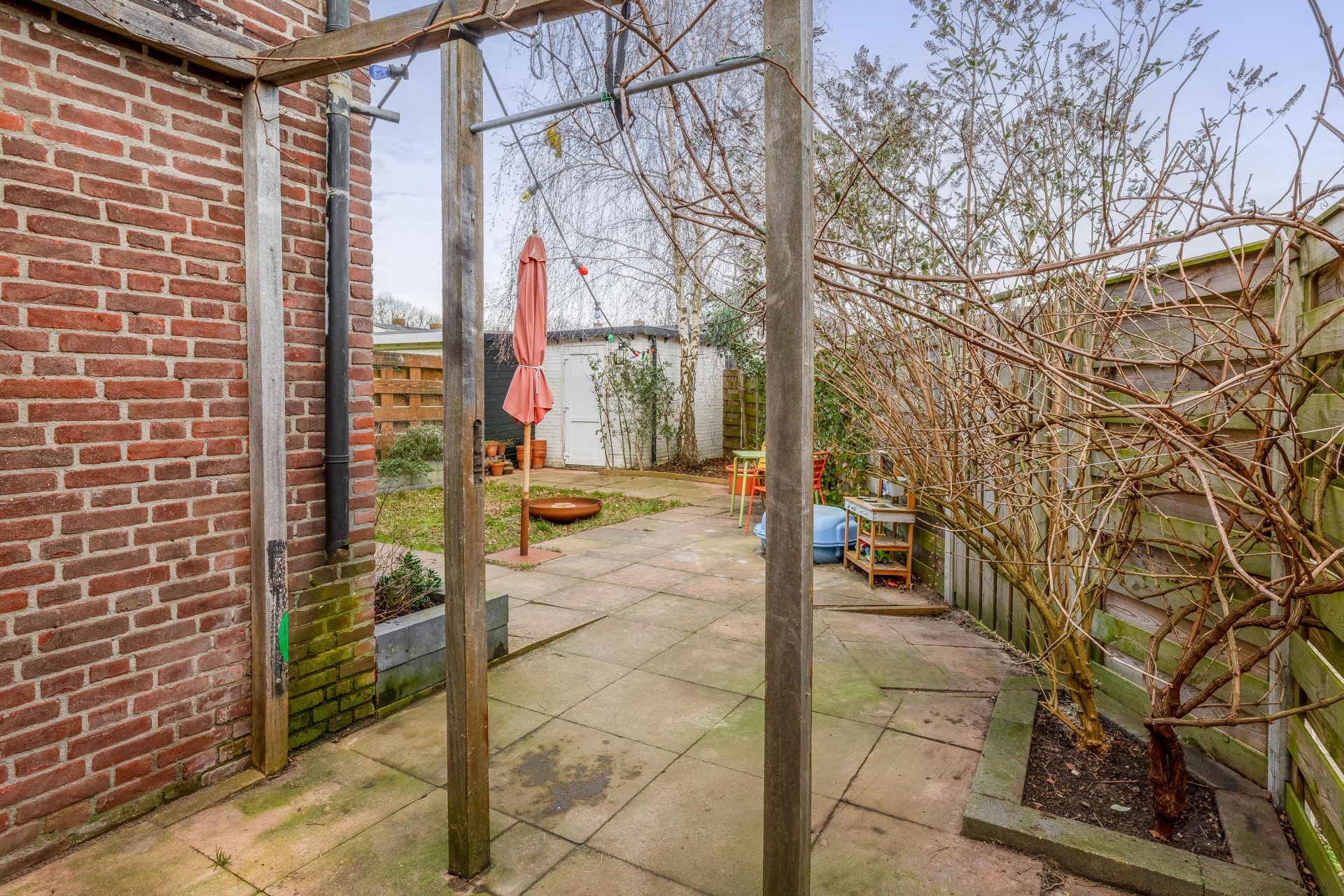 De tuin is onder meer voorzien van een achterom en een stenen berging. De tuin biedt volop mogelijkheden voor een extra berging of bijvoorbeeld een overkapping.