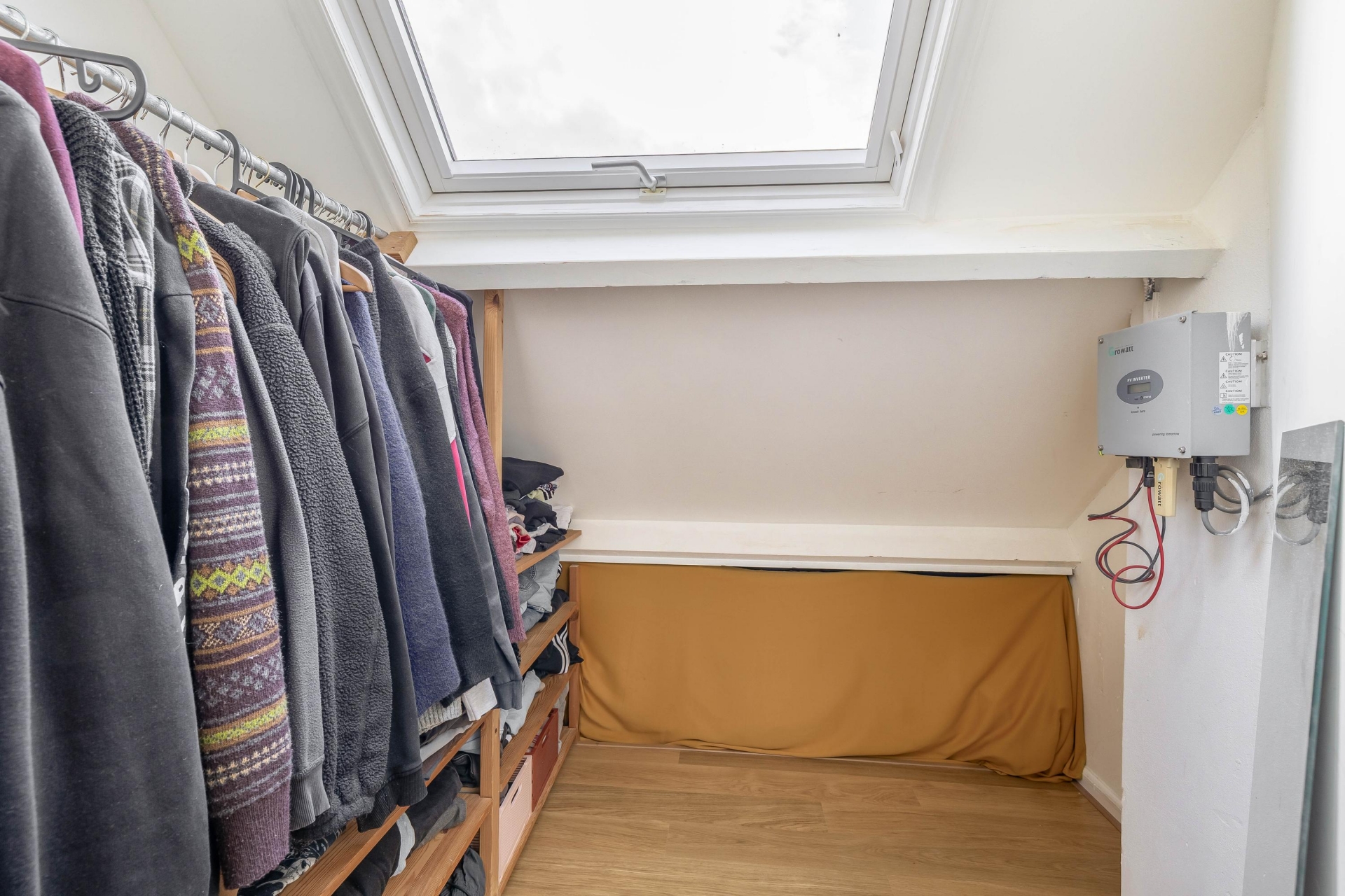 Voorzolder met opstelplaats voor de CV ketel (Remeha Calenta bouwjaar 2009). Aan de voorzijde bevindt zich een berging met dakraam en opstelplaats voor de omvormer van de zonnepanelen. De woning is voorzien van 6 zonnepanelen wat een aanzienlijke besparing in de energiekosten oplevert.