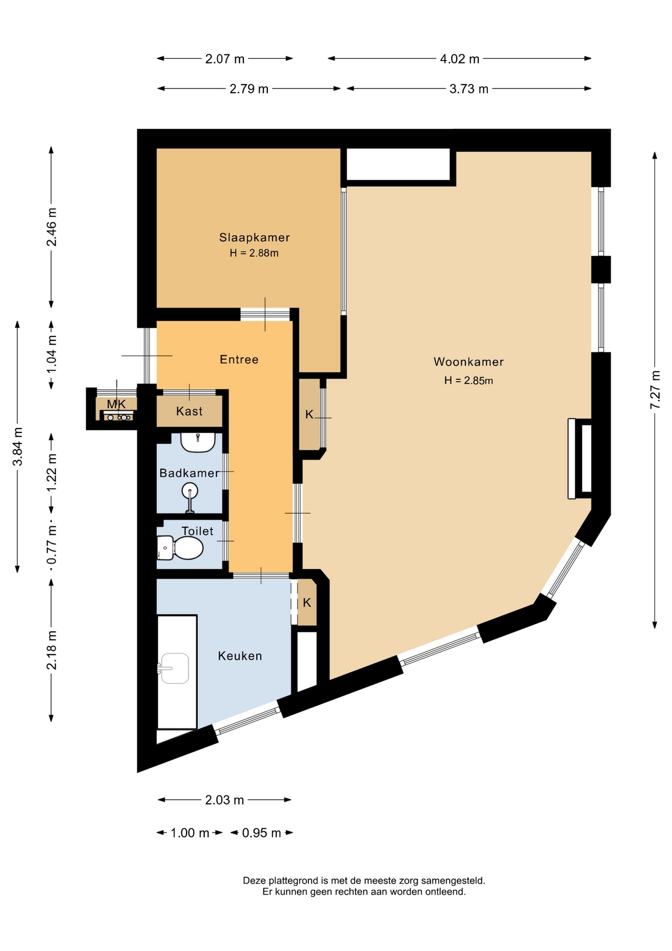 “Deze informatie is door ons met de nodige zorgvuldigheid samengesteld. Onzerzijds wordt echter geen enkele aansprakelijkheid aanvaard voor enige onvolledigheid, onjuistheid of anderszins, dan wel de gevolgen daarvan. Alle opgegeven maten en oppervlakten zijn indicatief.”