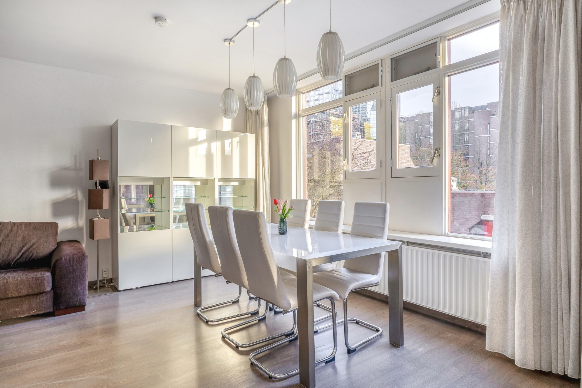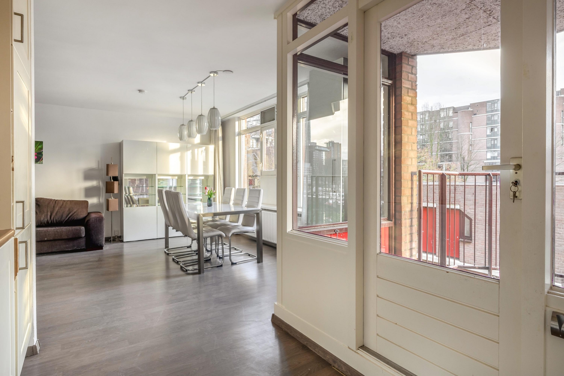 Wonen in hartje Rotterdam, maar dan wél met rust, uitzicht en comfort. Dit goed onderhouden 3-kamerappartement op de tweede verdieping biedt het allemaal. Vanuit de woonkamer, keuken en beide slaapkamers kijk je direct uit op de Leuvehaven, een levendig maar autovrij stukje stad. De royale woonkamer is speels ingedeeld en voorzien van een moderne laminaatvloer. Dankzij de grote raampartijen valt het daglicht mooi naar binnen en vormt het balkon op het zuiden een verlengstuk van je leefruimte. Hier geniet je tot in de avond van de zon en het uitzicht op het water.